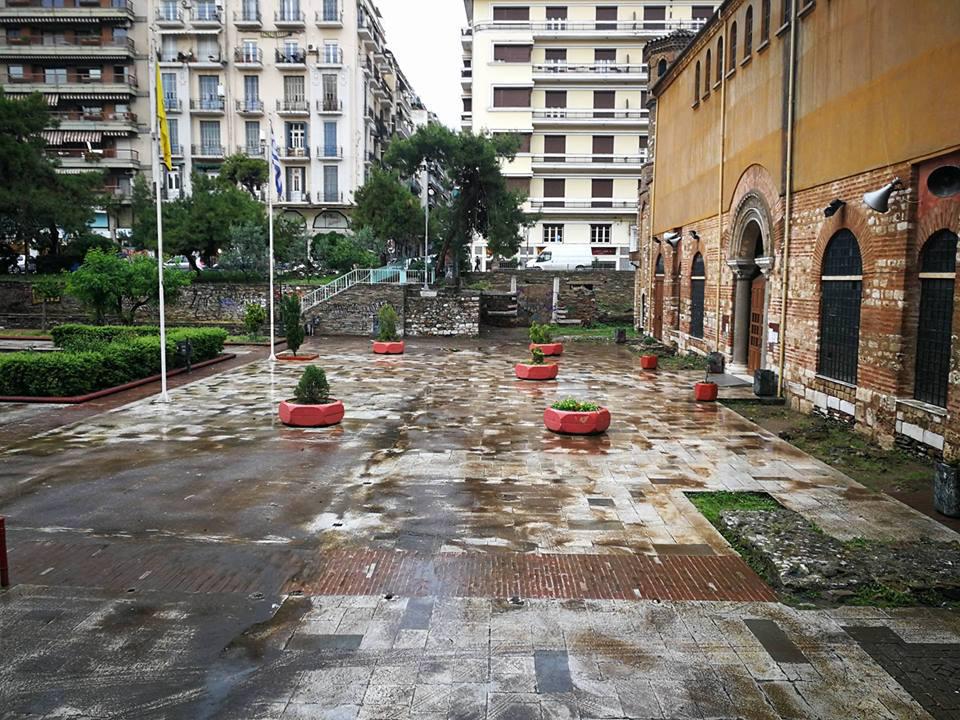 Από τα έντονα καιρικά φαινόμενα που ξέσπασαν σήμερα στη Θεσσαλονίκη δεν γλίτωσε ούτε ο Ναός της Αγίας Σοφίας καθώς, σύμφωνα με το ΑΠΕ, πλημμύρισε το εσωτερικό του και χρειάστηκε να πραγματοποιηθούν ενέργειες απομάκρυνσης του νερού.