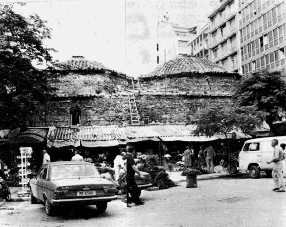 Ανθοπωλεία όπως τα γνωρίζουμε σήμερα δεν υπήρχαν τότε… Οι κυράδες ήξεραν, όμως, πού θα προμηθευτούν τα λουλούδια για τα βάζα τους… Στην ίδια περιοχή που γέμιζαν και το καλάθι τους με τα ψώνια της ημέρας. Στην κεντρική αγορά της πόλης. Ένα τετράγωνο 200 περίπου τ.μ. στέγασε 11 μικρές ευωδιαστές επιχειρήσεις μπροστά ακριβώς στο παλιό χαμάμ που δεν λειτουργούσε ήδη από το 1912 σαν χαμάμ. Στην πυρκαγιά του 17 είχε ήδη υποστεί ζημιές το κτίριο και είχε σουλουπωθεί όπως όπως για να στεγάσει μικρά μαγαζάκια. Ένα μανάβικο, το περίφημο μαγέρικο «Το Λουτρό» και ένα προποτζίδικο ήταν τα μαγαζιά που διατηρήθηκαν στο χαμάμ μέχρι το τέλος της δεκαετίας του 90. Στην πλευρά προς την Βασιλέως Ηρακλείου ο δήμος έφτιαξε πρόχειρες κατασκευές εφαπτόμενες στο παλιό Χαμάμ και οι ανθοπώλες έστησαν εκεί τις επιχειρήσεις τους. Στο εσωτερικό του χαμάμ διατηρούσαν αποθήκες.