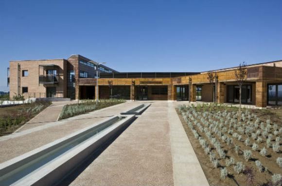 Τα υλικά κατασκευής επιλέχθηκαν με βάση τη συμπεριφορά τους στις υπάρχουσες κλιματικές συνθήκες, την αισθητική τους και κυρίως τις μειωμένες ανάγκες συντήρησης και τη δυνατότητα ανακύκλωσής τους. Χειροποίητα κεραμικά τούβλα από τοπικό παραγωγό, ανακυκλώσιμος πολυβυνιλικός τάπητας υψηλής αντοχής και έγχρωμες, ρητινούχες, τσιμεντοειδείς επιστρώσεις στους χώρους κυκλοφορίας (διάδρομοι, χολ, κλιμακοστάσια) και ελληνικά πλακίδια πορσελάνης στους χώρους υγιεινής και Εστίασης. Τα δάπεδα των εξωτερικών χώρων επιστρώθηκαν με άτριφτο μωσαϊκό από τοπικά υλικά, πλαισιωμένο με πλάκες τοπικού μαρμάρου. Για την ενισχυμένη θερμομόνωση χρησιμοποιήθηκαν ανακυκλώσιμα υλικά φιλικά προς το περιβάλλον ενώ οι βαφές του κτιρίου είναι ελληνικές, πλαστικές, υδατοδιαλυτές, χωρίς αμμωνία. Έχουν ληφθεί μέτρα για την εξοικονόμιση του νερού στο εσωτερικό του κτιρίου με περιοριστές ροής στους χώρους υγιεινής και τον χώρο Εστίασης ενώ για τη φύτευση του υπαίθριου χώρου επιλέχθηκαν φυτά μεσογειακά, κατάλληλα για το κλίμα της περιοχής, με μειωμένες απαιτήσεις άρδευσης σύμφωνα με τις σύγχρονες οικολογικές απαιτήσεις. Στο υπόγειο του κεντρικού κτιρίου του συγκροτήματος, προβλέφθηκε και κατασκευάστηκε ειδικός χώρος συλλογής απορριμάτων και ανακυκλώσιμων υλικών.