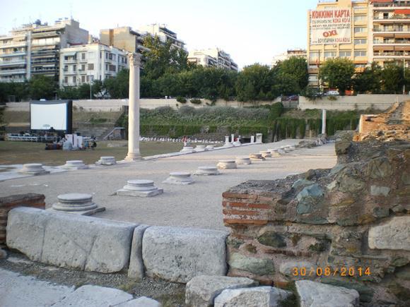 Περπάτησα ανάμεσα στις βάσεις των κιόνων –ήταν, λέει, 200 κίονες, κορινθιακού ρυθμού- πήγα στο Ωδείο, στην ανατολική πλευρά, που ήταν βουλευτήριο και θέατρο, πέρασα μέσα από τους θολωτούς χώρους–εισόδους των θεατών, ανέβηκα στις κερκίδες και είδα το γυάλινο πάτωμα που προστατεύει το παλιό, πήγα στο νομισματοκοπείο. Μπήκα στα μαγαζιά, στη νότια πλευρά της αγοράς και στην θολωτή αίθουσα, που, όπως φαίνεται, ήταν αποθηκευτικός χώρος.