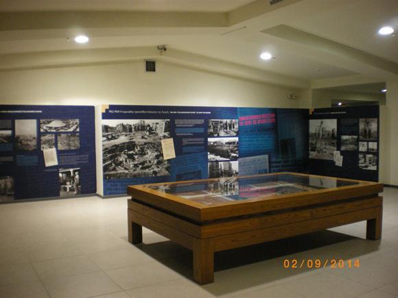 Συνέχισα στην επόμενη αίθουσα – όπου και ήξερα τι να περιμένω. Παρόλα αυτά η επόμενη έκθεση ήταν στ΄αλήθεια καθηλωτική. Μεγάλες φωτογραφίες από τη Θεσσαλονίκη του 1917 και την καταστροφική φωτιά, και δίπλα: η φωτογραφική αποτύπωση της προσπάθειας κάποιων ανθρώπων (οραματιστών, προσηλωμένων στην επιστήμη τους, ανθρωπιστών;) να ανακαλύψουν, να σώσουν και να αναδείξουν τον αρχαιολογικό χώρο. Tο Νέο Σχέδιο για την πόλη προέβλεπε -διάβασα στο ιστορικό- την κατασκευή δημοτικού και δικαστικού μεγάρου στην περιοχή. Οι εργασίες εκσκαφών, στις αρχές της δεκαετίας του ’60, έφεραν στο φως τα ερείπια της αγοράς και από τότε ξεκίνησε μια αγωνιώδης προσπάθεια για τη διάσωσή της, η οποία κατέληξε, με επιτυχία, το 1969. Είδα τις ανασκαφές, διάβασα τις σημειώσεις των αρχαιολόγων, είδα τα έγγραφα προς τις αρχές για την πορεία των ανασκαφών, τα ΦΕΚ με τις αποφάσεις· είδα και τον αρχαιολόγο Φώτη Πέτσα δίπλα στον κίονα (τον μοναδικό κίονα που διασώθηκε ολόκληρος) που ανύψωσε, σε μια ύστατη προσπάθεια να δηλώσει τη σπουδαιότητα του αρχαιολογικού χώρου – η πράξη του αυτή θεωρείται ότι έπεισε τις αρχές για την διάσωση της Αγοράς. Καταπληκτική αναδρομή στο παρελθόν.