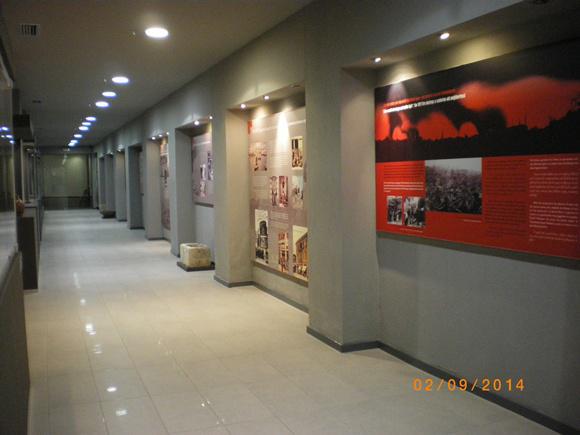Πέρασα από τo διάδρομο με τις φωτογραφίες από τις εργασίες κατασκευής του μουσείου –από τη μια πλευρά- και με τα ευρήματα όλων των εποχών και το «οδοιπορικό» μέσα στο χρόνο, από τον 3ο π.Χ. αιώνα – από την άλλη.