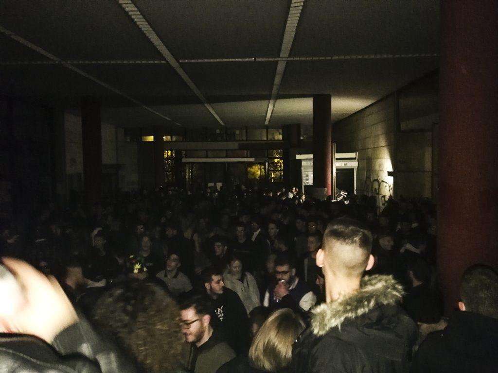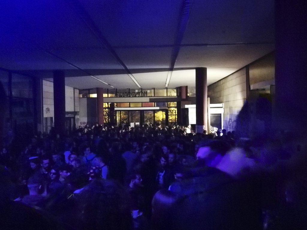 Το φουαγιέ της Φιλοσοφικής και του Πολυτεχνείου γεμίζει νεαρόκοσμο έτοιμο να εκραγεί από δύναμη και διάθεση για κάτι δυνατό, η ατμόσφαιρα ανταποκρίνεται πλήρως σε ό,τι μπορεί να πρεσβεύει κάτι που χαρακτηρίζεται πλέον ως “θρυλικό”.