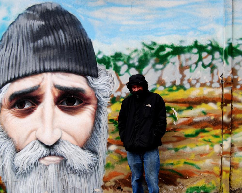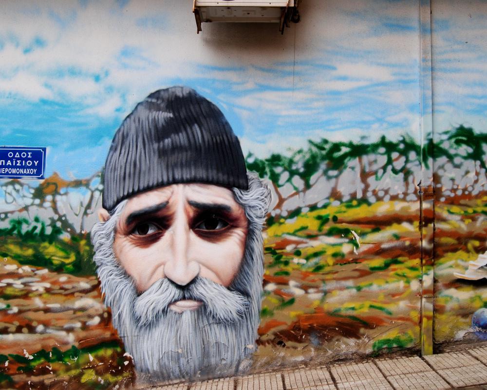 «Από μικρός ήμουν γκραφιτάς και το ”ζαχάρωνα” το ντουβάρι, ήθελα να το ζωγραφίσω ρε παιδί μου»! Ουσιαστικά, δεν υπήρχε κάποιος συγκεκριμένος λόγος που ζωγράφισε τον συγκεκριμένο γέροντα. Του άρεσε ο τοίχος, γιατί ήταν σε κεντρικό δρόμο και σε συνδυασμό με το όνομα της οδού αποφάσισε να πράξει ανάλογα. Τόνισε, ότι προτού αρχίσει να «πετάει» τα χρώματά του, έκανε τον σταυρό του και είπε μία προσευχή προς τον Άγιο Παΐσιο για να τον αξιώσει με μία καλή έμπνευση.