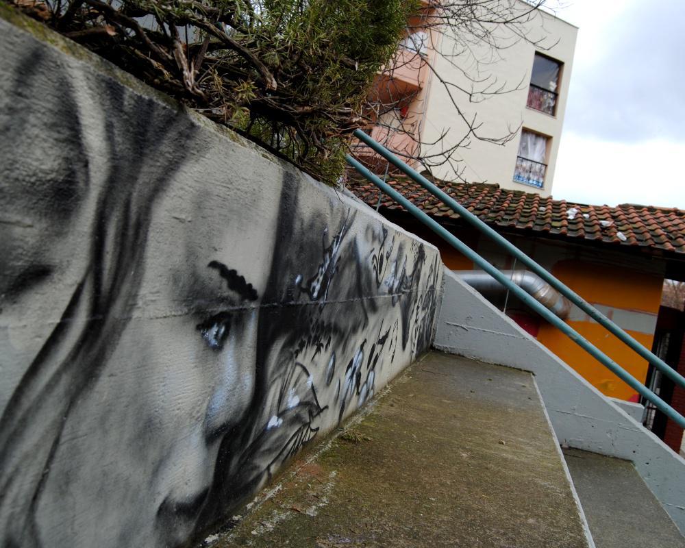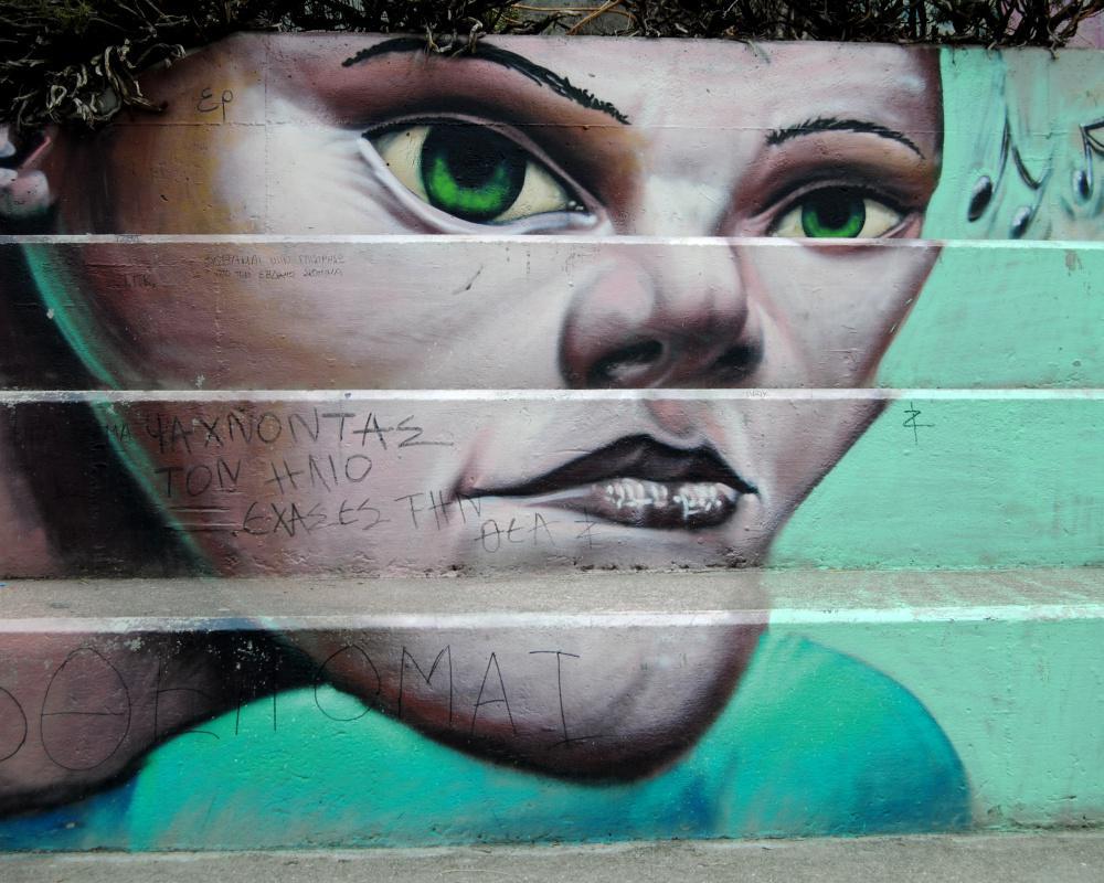 Φτάνοντας στη μικρή πλατεία των Μετεώρων, μου έδειξε τους τοίχους που είχαν την υπογραφή του. Ποτέ δεν περίμενε η συγκεκριμένη προσωπογραφία να πάρει την τωρινή της έκταση σε δημοσιότητα. Η απόφαση πάρθηκε σ’ ένα χαμογελαστό και όμορφο πρωινό της ζωή του. Όμως για να πιάσει τα πινέλα του, πέρασε σχεδόν ένας χρόνος σκέψης και ίσως φόβου για να ξεκινήσει.