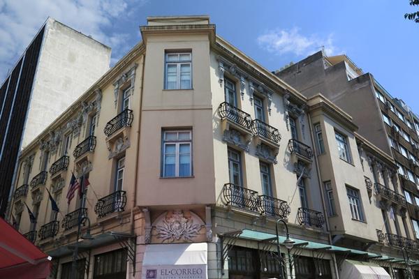 Το κτίριο χρονολογείται από το 1860 και στέγασε το Οθωμανικό Ταχυδρομείο της πόλης κάτω από το όνομα Hotel des Postes et Telegraphes. Περιλαμβάνει ισόγειο με καταστήματα, μεσοπάτωμα και και 2 ορόφους. 40 δωμάτια με κοινούς χώρους υγιεινής ανά όροφο. Σημαντική η θέση του δίπλα στην Πλατεία Ελευθερίας και στα μετέπειτα ανεγερθέντα κτίρια των τραπεζών. Έφθινε με την ανάπτυξη των Λαδάδικων ως τόπος ψυχαγωγίας, αλλά με τη νέα υποδειγματική ανακαίνισή του έλαμψε και πάλι. Τα δωμάτια έγιναν 20 και εντάχθηκαν στο ξενοδοχείο και το ισόγειο και το μεσοπάτωμα, ενώ αξιοποιήθηκε και ο ακάλυπτος χώρος, πίσω.