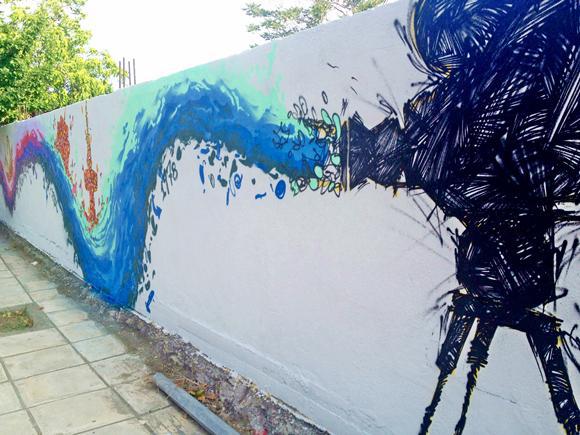 Όλα αυτά στο πλαίσιο του West Side Story, της δράσης της parallaxi και του Θεσσαλονίκη Αλλιώς στη δυτική είσοδο της Θεσσαλονίκης, που σκοπό έχει την ανάδειξη μιας περιοχής στο κέντρο της πόλης, άγνωστης για τους περισσότερους Θεσσαλονικείς. Με τη συγκεκριμένη χρωματική παρέμβαση επιχειρούμε να δώσουμε χρώμα και ζωή σε μια πρώην βιομηχανική γειτονιά, που σήμερα είναι πυκνοκατοικημένη, με ακρετά αστικά και πολεοδομικά προβλήματα, όπως επίσης και με μεγάλη έλλειψη πρασίνου και πολιτιστικών εκδηλώσεων. Αλλάζοντας τον τοίχο που ξεκινά από τα δικαστήρια και εκτείνεται στον ιστορικό Παλαιό Σταθμό, δημιουργούμε ένα νέο σκηνικό πλαίσιο για τον επισκέπτη της πόλης από την κύρια της είσοδο.