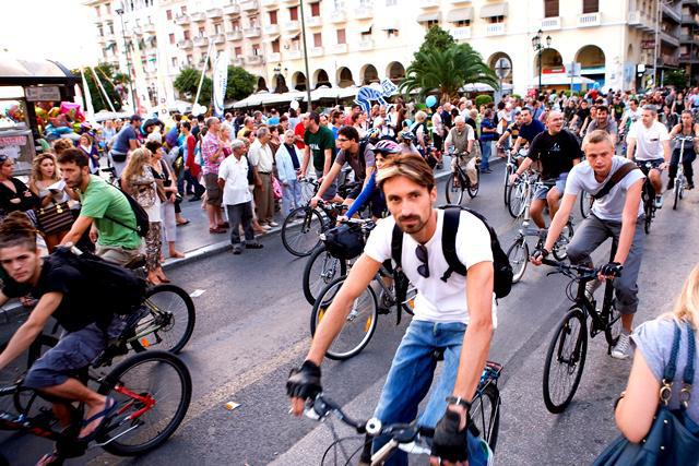 Οι Ποδηλάτες Θεσσαλονίκης παίρνουν τα ποδήλατά τους και κάνουν τη βόλτα τους στην άδεια Μητροπόλεως. Παράλληλα, οι Πολύχρωμοι Ποδηλάτες δίνουν το δικό τους χρώμα στο γκρίζο οδόστρωμα και στήνουν σημεία επισκευής ποδηλάτων.