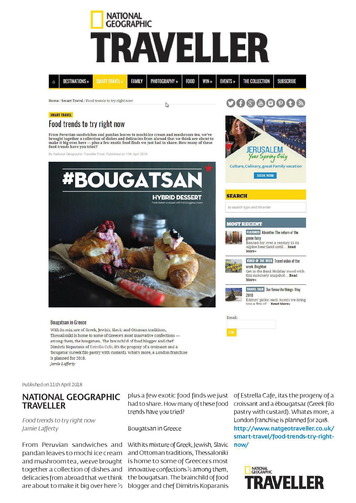 Στο νέο του τεύχος το διάσημο περιοδικό του κόσμου αναφέρεται στο διάσημο, πια παγκόσμια Μπουγατσάν, δημιουργία του Δημήτρη Κοπαράνη για την Estrella της Θεσσαλονίκης, αλλά και πολλών άλλων σημείων της Ελλάδας.