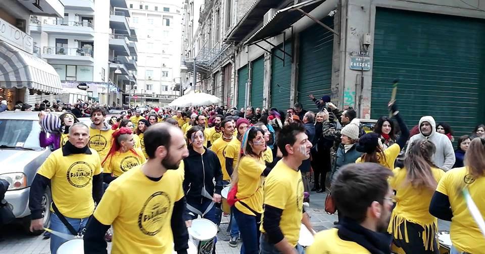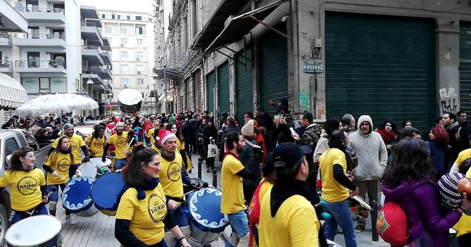 Με τα κίτρινα μπλουζάκια τους και το ζωγραφισμένο χαμόγελο στα χείλη, τα μέλη της μπάντας που προωθεί την αφροβραζιλιάνικη κουλτούρα δίνει θετική ενέργεια αυτή την ώρα σε κεντρικά σημεία. Εδώ, τους απολαμβάνουμε στα Άνω Λαδάδικα: