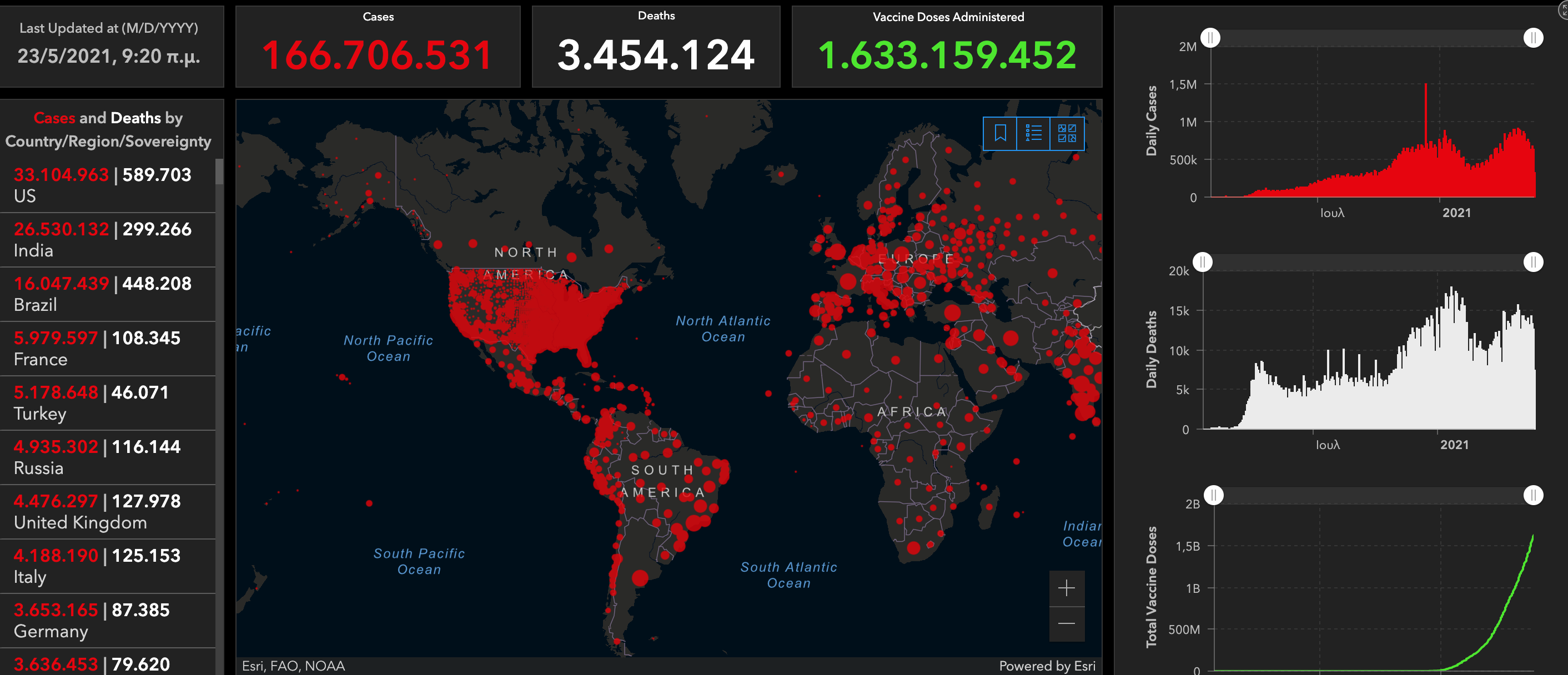 Η εικόνα της πανδημίας σήμερα (24/5) στον κόσμο