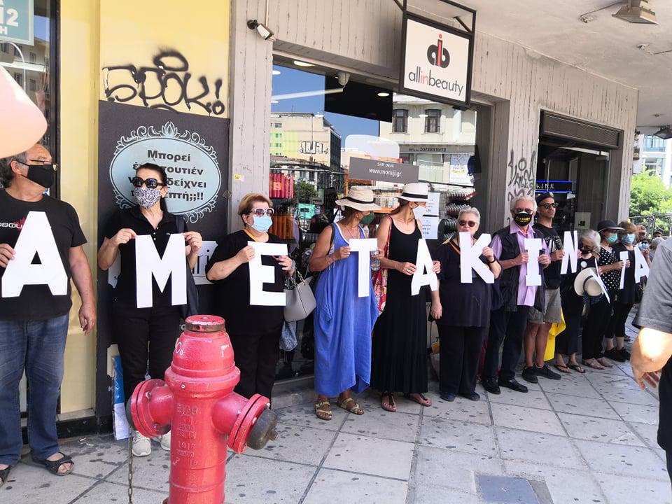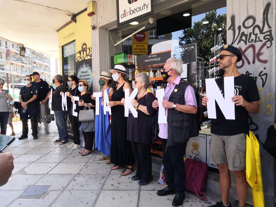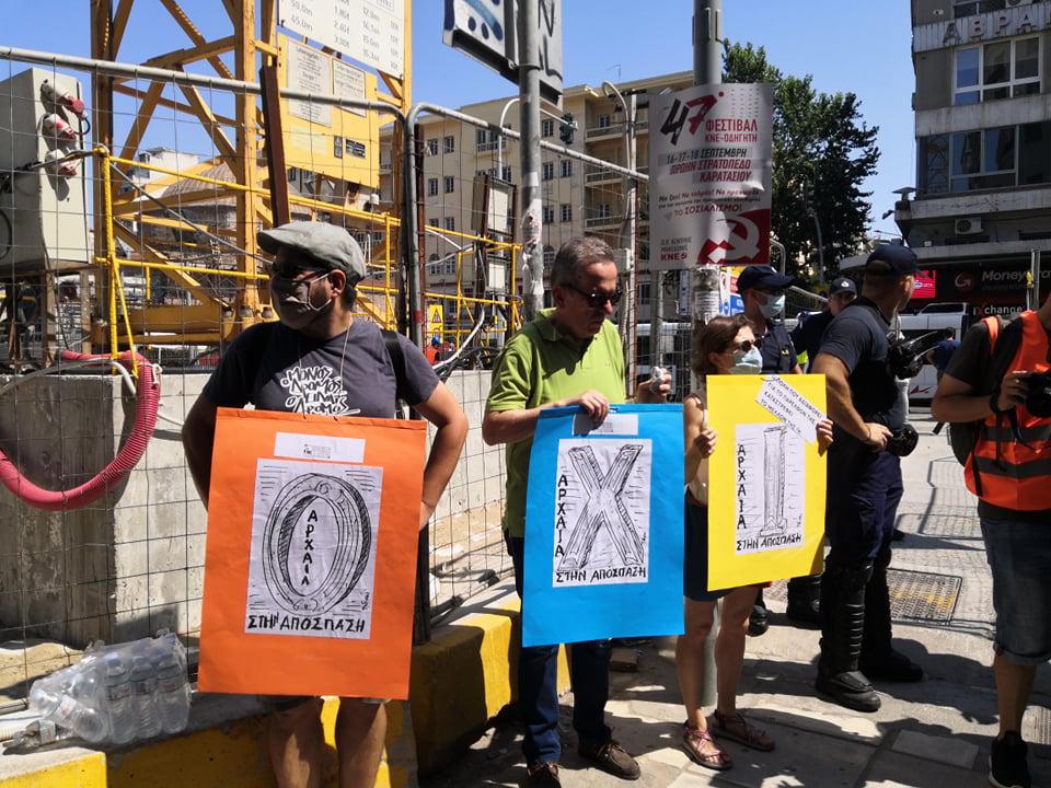 Σιωπηλή διαμαρτυρία πραγματοποιούν στο σταθμό Βενιζέλου μέλη της Κίνησης Πολιτών Θεσσαλονίκης για την Προστασία της Πολιτιστικής Κληρονομίας.