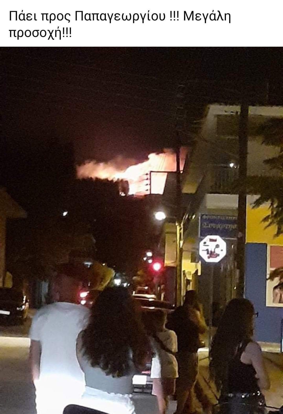 Αυτή την ώρα απειλείται περιοχή με χαμηλή βλάστηση που φτάνει ως το νοσοκομείο Παπαγεωργιου και το 424.