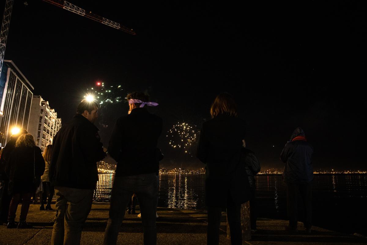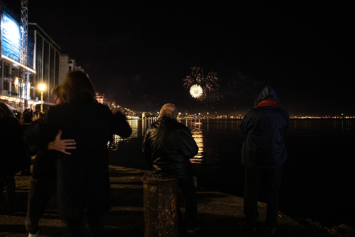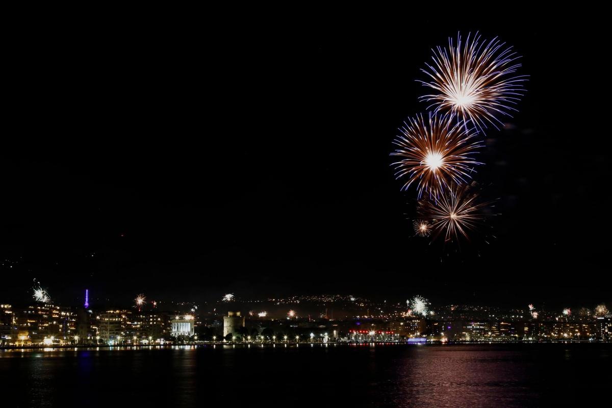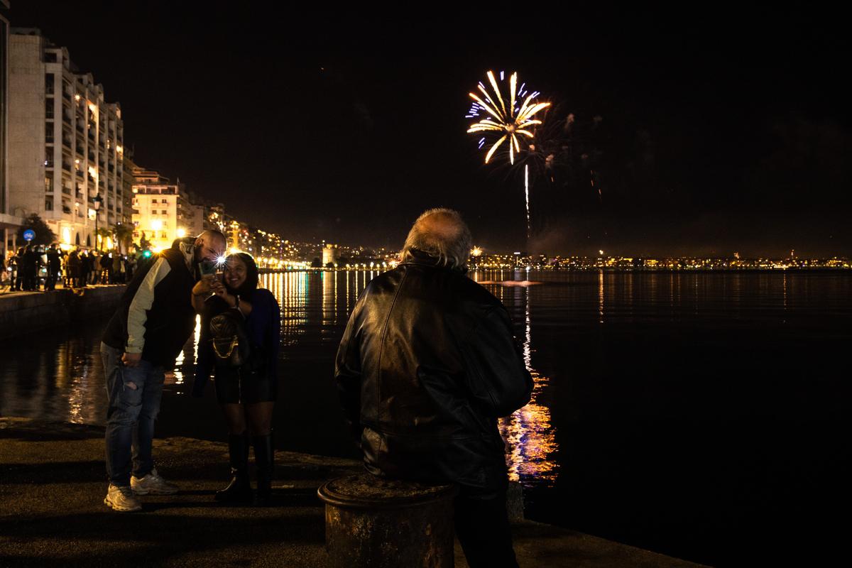Fireworks show celebrates the New Year in the city of Thessaloniki, Greece on January 1, 2022./ Ρίψη πυροτεχνημάτων στη Θεσσαλονίκη για τον εορτασμό της Πρωτοχρονιάς, 1 Ιανουαρίου 2022.A couple dances during a fireworks show in Thessaloniki to celebrate the New Year, January 1, 2022./ Ενα ζευγάρι νέων χορεύει κατά την ρίψη πυροτεχνημάτων στη Θεσσαλονίκη για τον εορτασμό της Πρωτοχρονιάς, 1 Ιανουαρίου 2022Fireworks show celebrates the New Year in the city of Thessaloniki, Greece on January 1, 2022./ Ρίψη πυροτεχνημάτων στη Θεσσαλονίκη για τον εορτασμό της Πρωτοχρονιάς, 1 Ιανουαρίου 2022.Fireworks show celebrates the New Year in the city of Thessaloniki, Greece on January 1, 2022./ Ρίψη πυροτεχνημάτων στη Θεσσαλονίκη για τον εορτασμό της Πρωτοχρονιάς, 1 Ιανουαρίου 2022A couple takes a selfie during a fireworks show in Thessaloniki to celebrate the New Year, January 1, 2022./ Ενα ζευγάρι βγάζει φωτογραφία κατά την ρίψη πυροτεχνημάτων στη Θεσσαλονίκη για τον εορτασμό της Πρωτοχρονιάς, 1 Ιανουαρίου 2022.Fireworks show celebrates the New Year in the city of Thessaloniki, Greece on January 1, 2022./ Ρίψη πυροτεχνημάτων στη Θεσσαλονίκη για τον εορτασμό της Πρωτοχρονιάς, 1 Ιανουαρίου 2022.