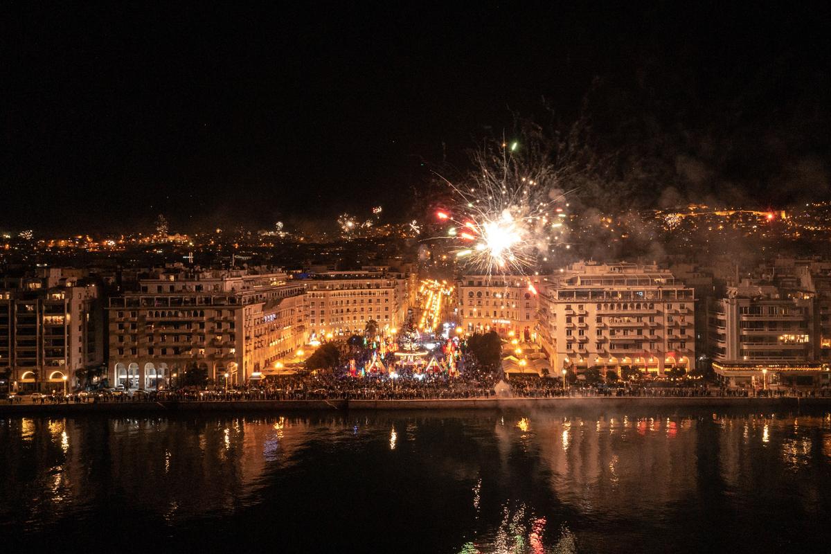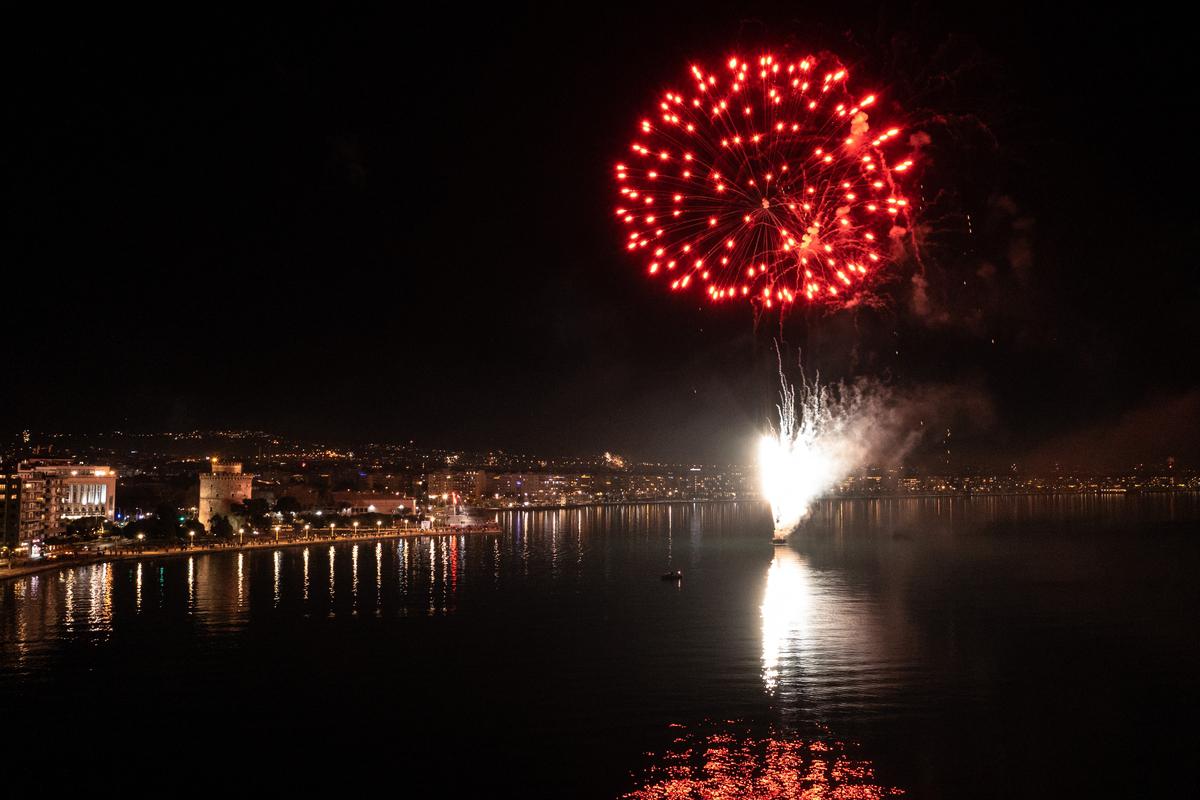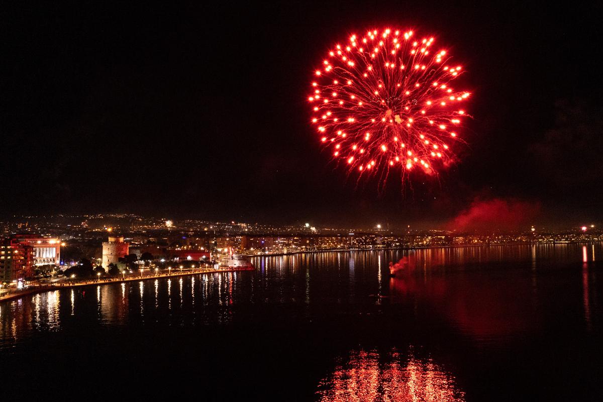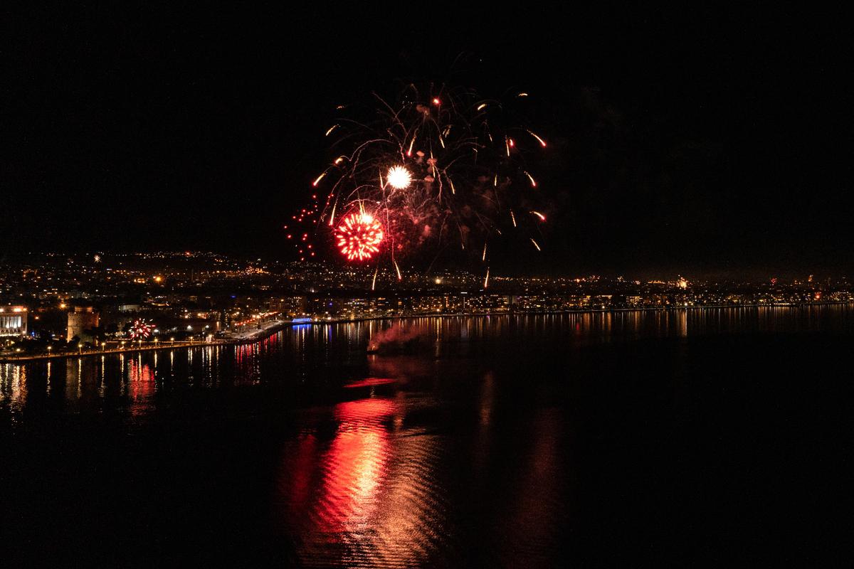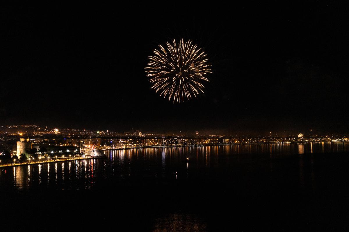 Fireworks show celebrates the New Year in the city of Thessaloniki, Greece on January 1, 2022./ Ρίψη πυροτεχνημάτων στη Θεσσαλονίκη για τον εορτασμό της Πρωτοχρονιάς, 1 Ιανουαρίου 2022.Fireworks show celebrates the New Year in the city of Thessaloniki, Greece on January 1, 2022./ Ρίψη πυροτεχνημάτων στη Θεσσαλονίκη για τον εορτασμό της Πρωτοχρονιάς, 1 Ιανουαρίου 2022.