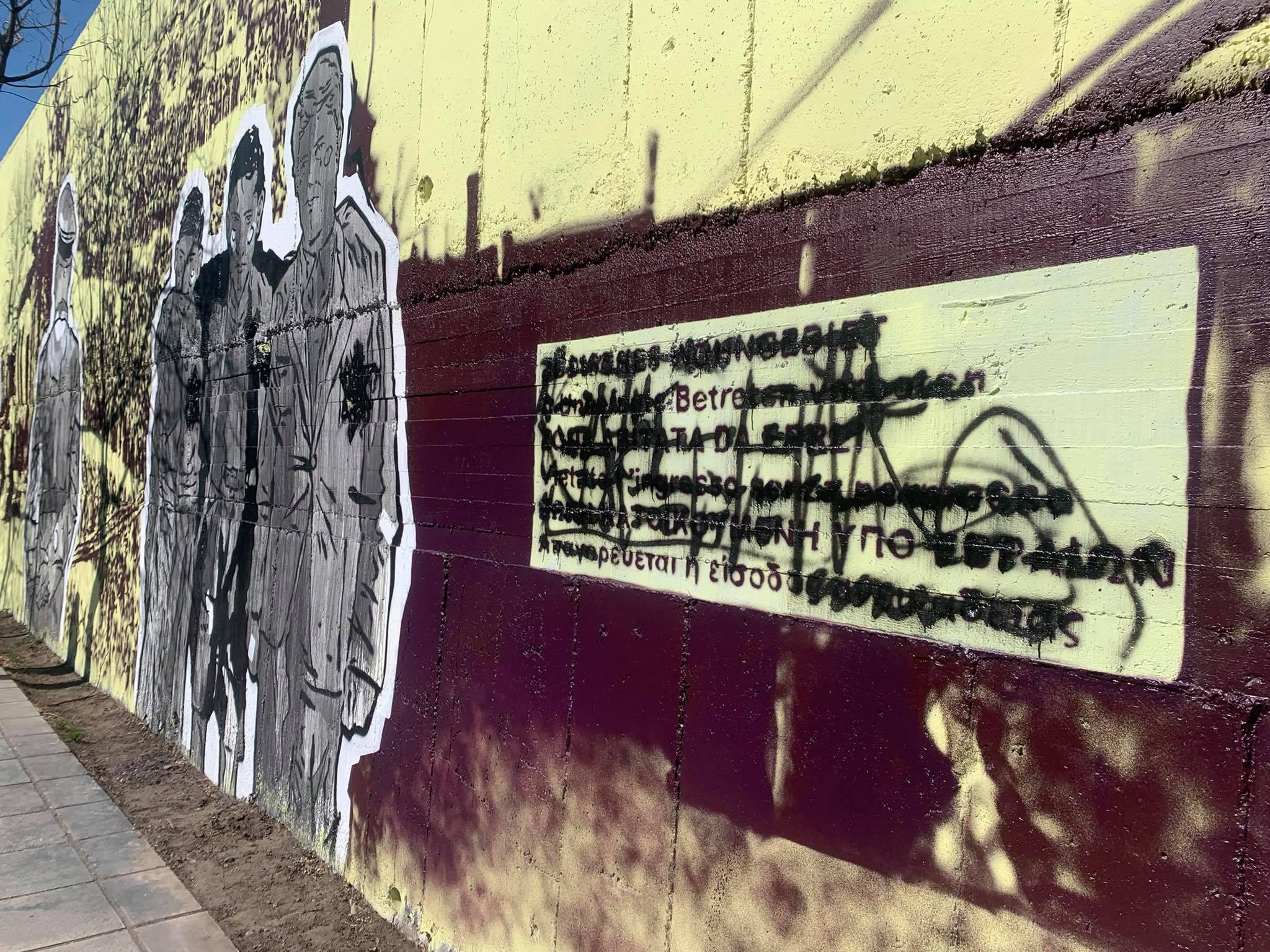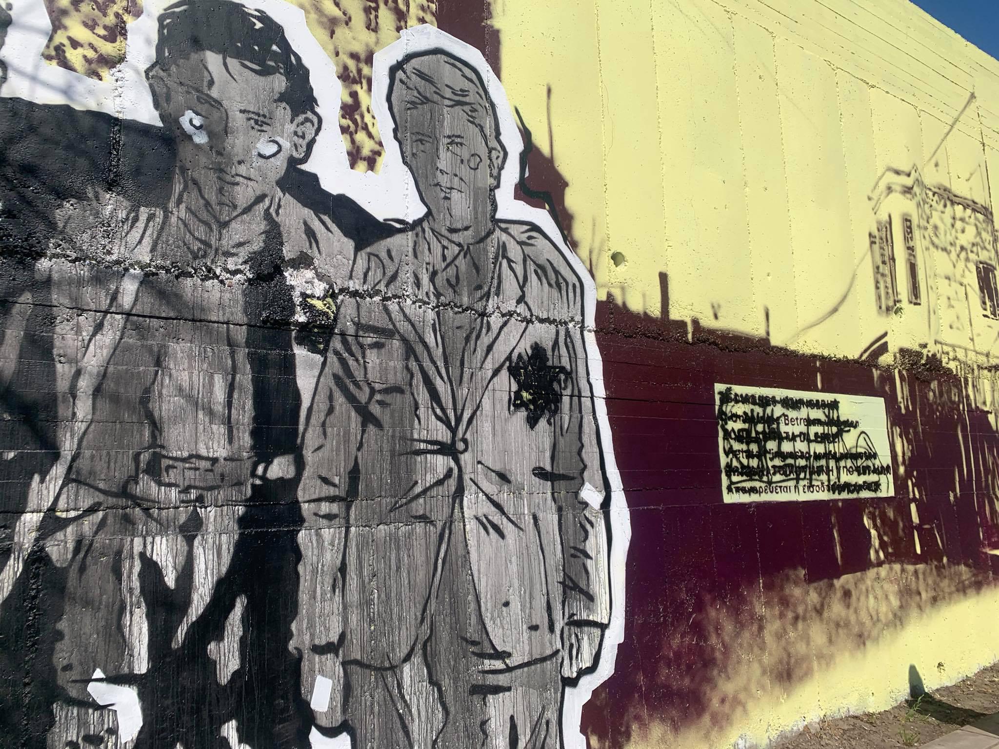 Θύμα βανδαλισμού από αγνώστους έπεσε η συγκλονιστική τοιχογραφία για το Ολοκαύτωμα των Εβραίων, επί της οδού Μιχαήλ Καλού στους τοίχους περίφραξης του ΟΣΕ.