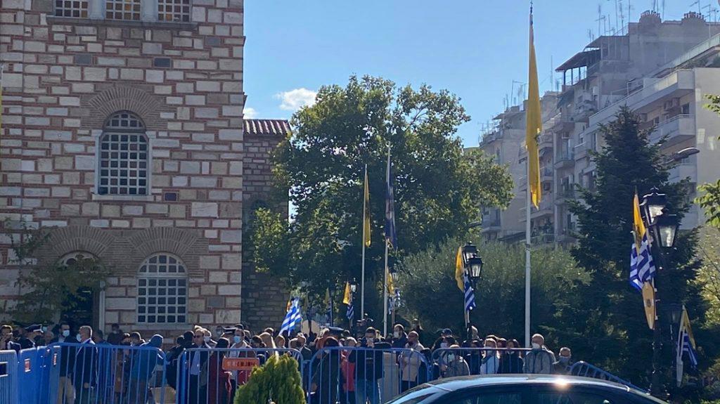 Ουρές πιστών σχηματίζονται αυτήν την ώρα έξω από τον Ιερό Ναό Αγίου Δημητρίου.