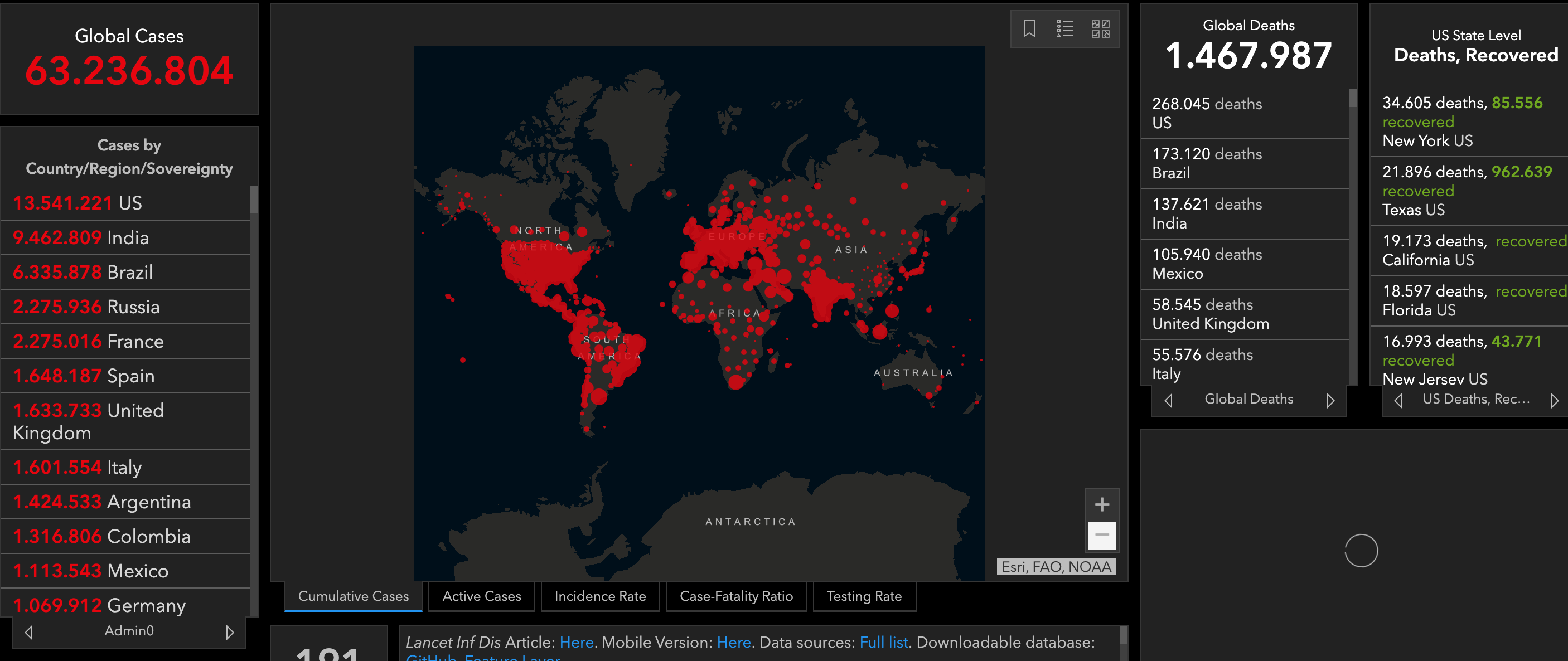Μερικές ημέρες μετά τη γιορτή των Ευχαριστιών, ειδικοί φοβούνται πως οι μετακινήσεις που έκαναν εκατομμύρια Αμερικανοί για να την περάσουν με τις οικογένειές τους θα προκαλέσει «εκτίναξη των κρουσμάτων προς τα πάνω που θα προστεθεί σε αυτή που καταγραφόταν ήδη», όπως το έθεσε ο Δρ. Άνθονι Φάουτσι.