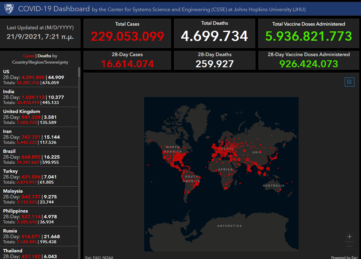Η εικόνα της πανδημίας αυτή την ώρα στον κόσμο.