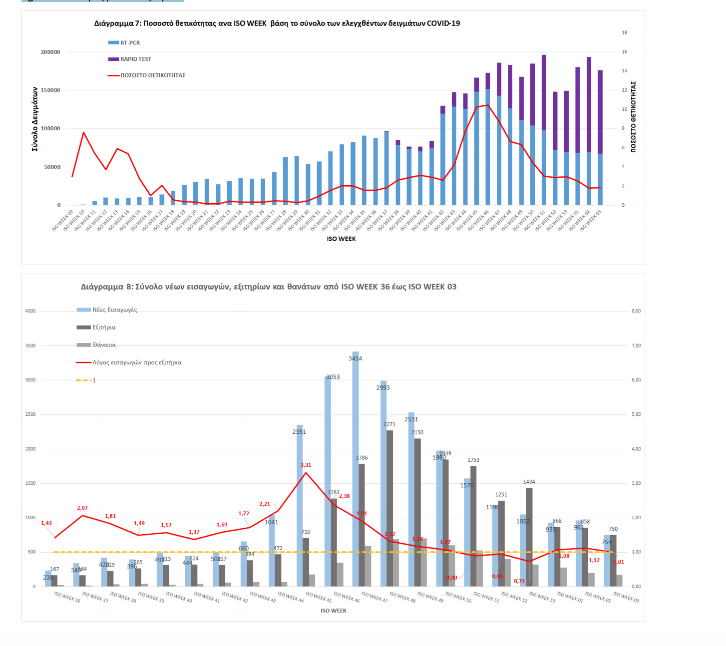 SO WEEK Την εβδομάδα 18 – 24 Ιανουαρίου (Iso Week 03) το ποσοστό θετικότητας ήταν 1,87% σε σύνολο 67.395 RT-PCR και 108.788 Rapid Ag τεστ που πραγματοποιήθηκαν.