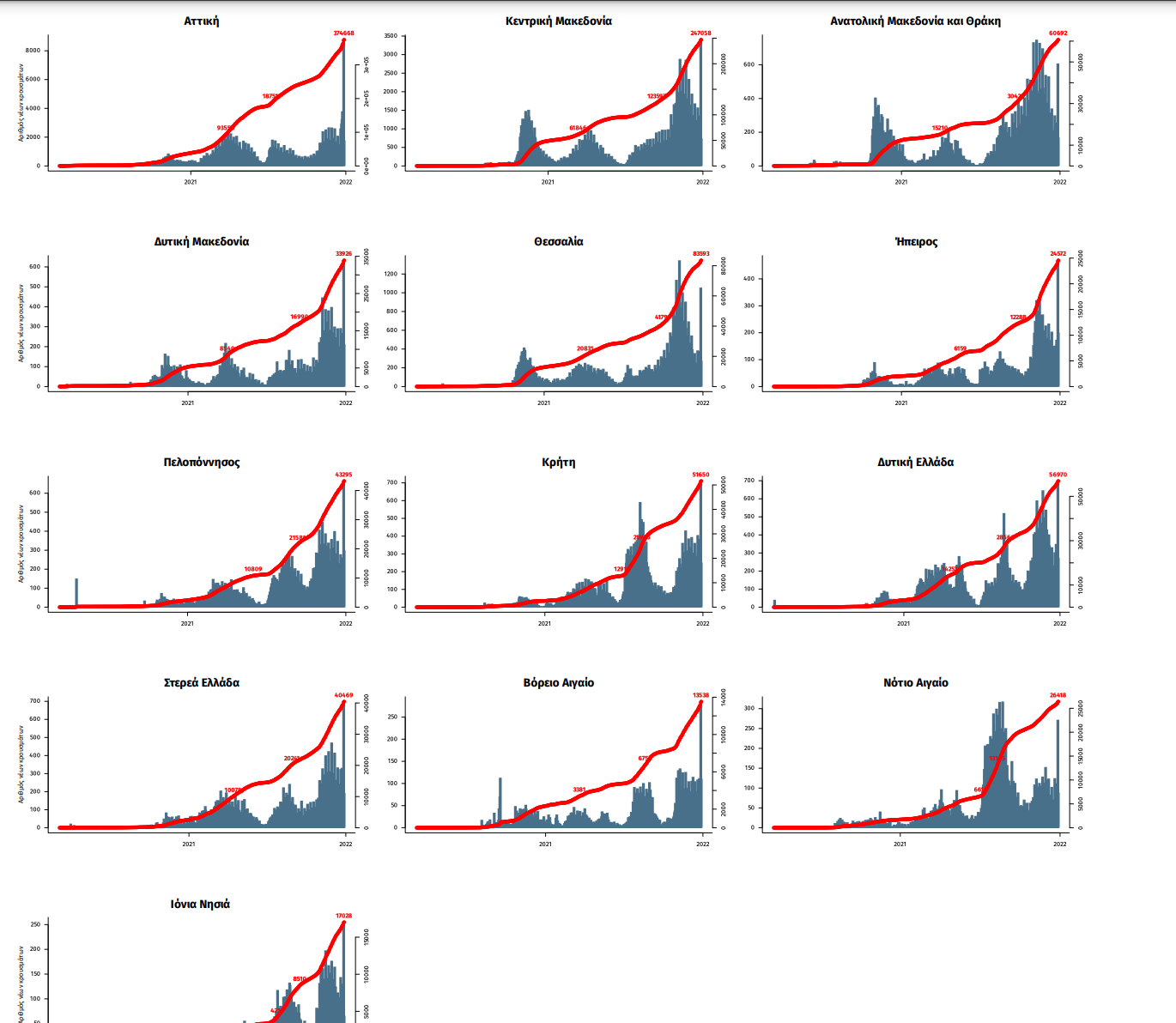 Παράρτημα 1: Επιδημικές καμπύλες κρουσμάτων COVID-19 με βάση την δηλωθείσα διεύθυνση μόνιμης κατοικίας του κρούσματος ή τη διεύθυνση προσωρινής διαμονής για τους τουρίστες και άλλους προσωρινά διαμένοντες στην Ελλάδα. Συμπεριλαμβάνονται τόσο κρούσματα με ιστορικό ταξιδίου όσο και κρούσματα με πιθανή εγχώρια μετάδοση.
