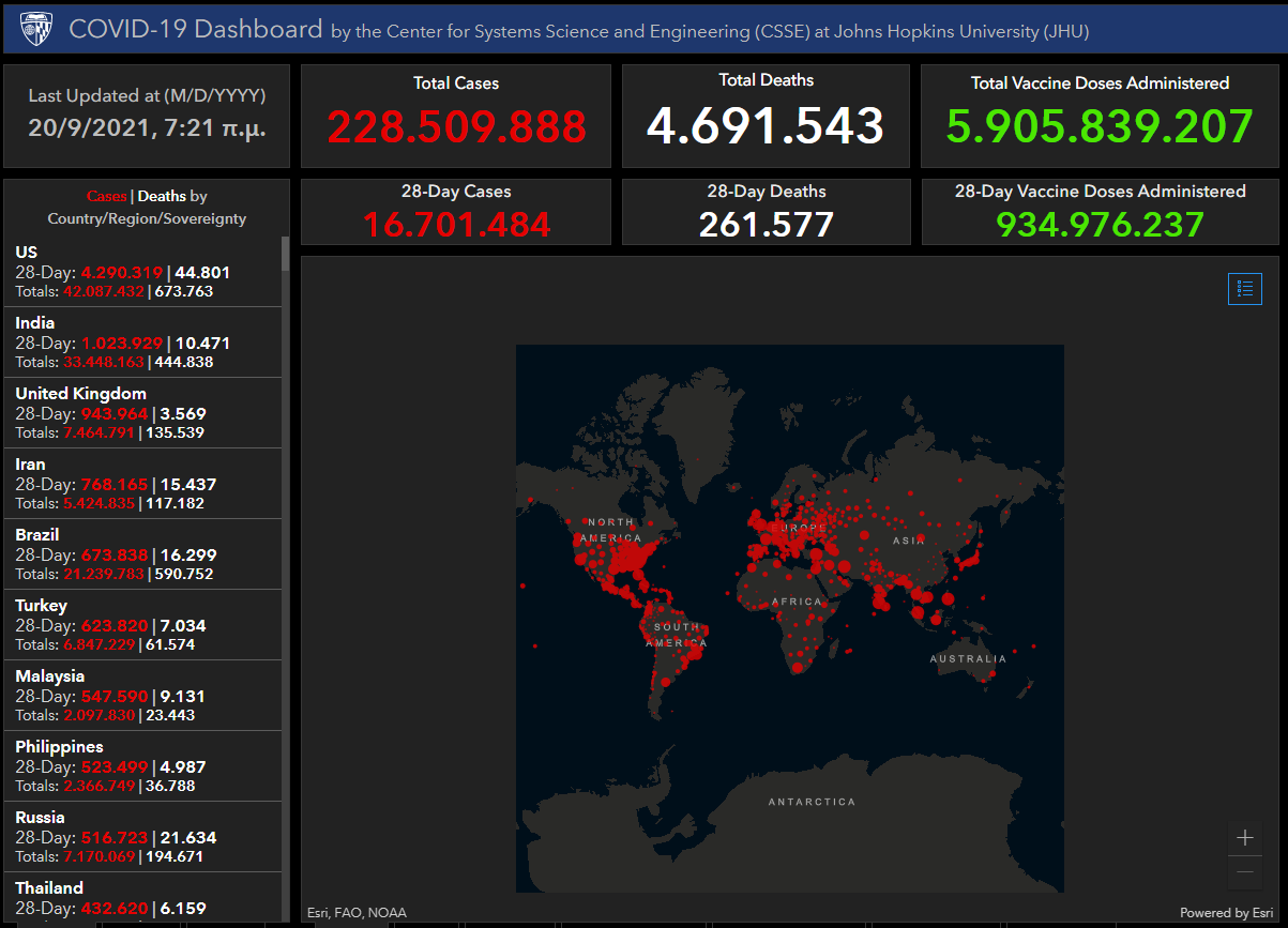 Η εικόνα της πανδημίας αυτή την ώρα στον κόσμο.