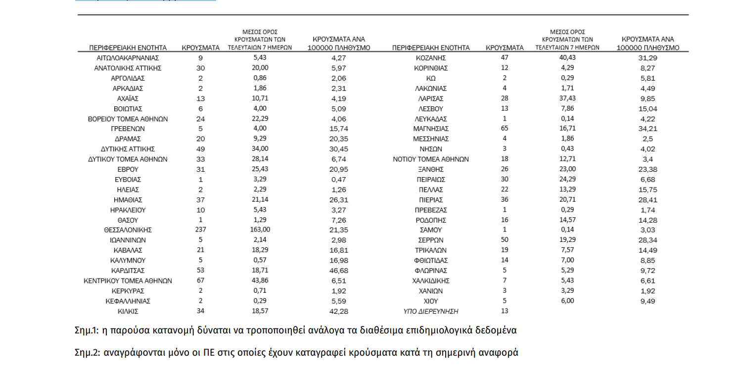 Ο συνολικός αριθμός των κρουσμάτων είναι 128.710