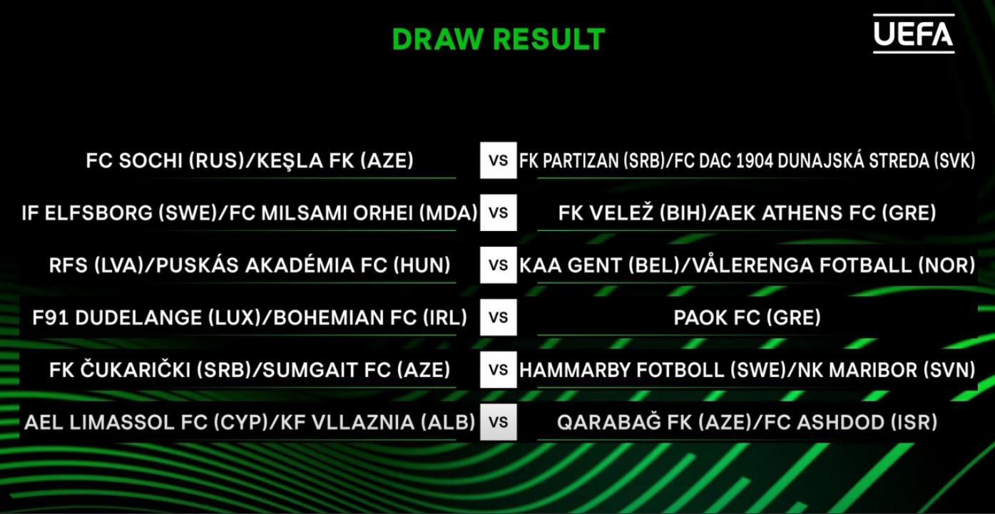 Το νικητή του ζευγαριού Ντουντελάνζ (Λουξεμβούργο) – Μποέμιανς (Ιρλανδία) θα συναντήσει ως αντίπαλο ο ΠΑΟΚ στον 3ο προκριματικό του Europa Conference League. Οι διπλοί αγώνες θα γίνουν διαδοχικά στις 5 και 12 Αυγούστου σε έδρες και ώρες που θα ανακοινωθούν προσεχώς.