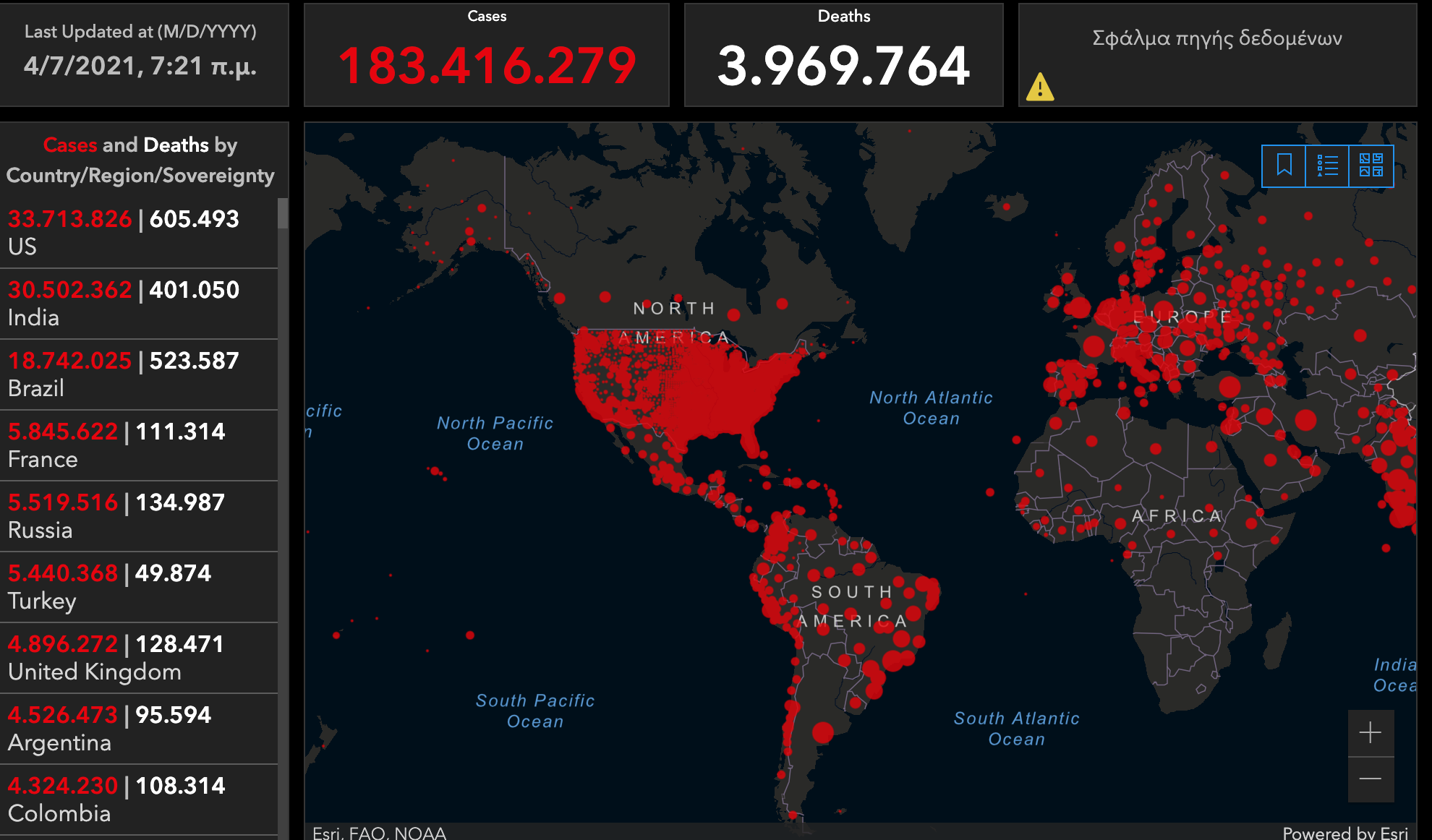 Η εικόνα της πανδημίας όπως διαμορφώνεται σήμερα Δευτέρα 5 Ιουλίου