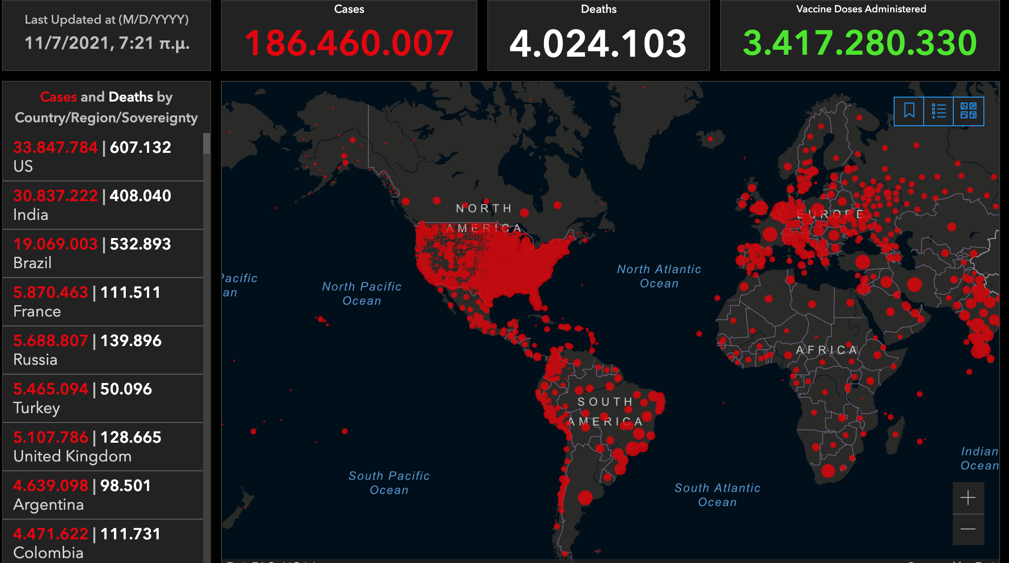 Η εικόνα της πανδημίας σήμερα.