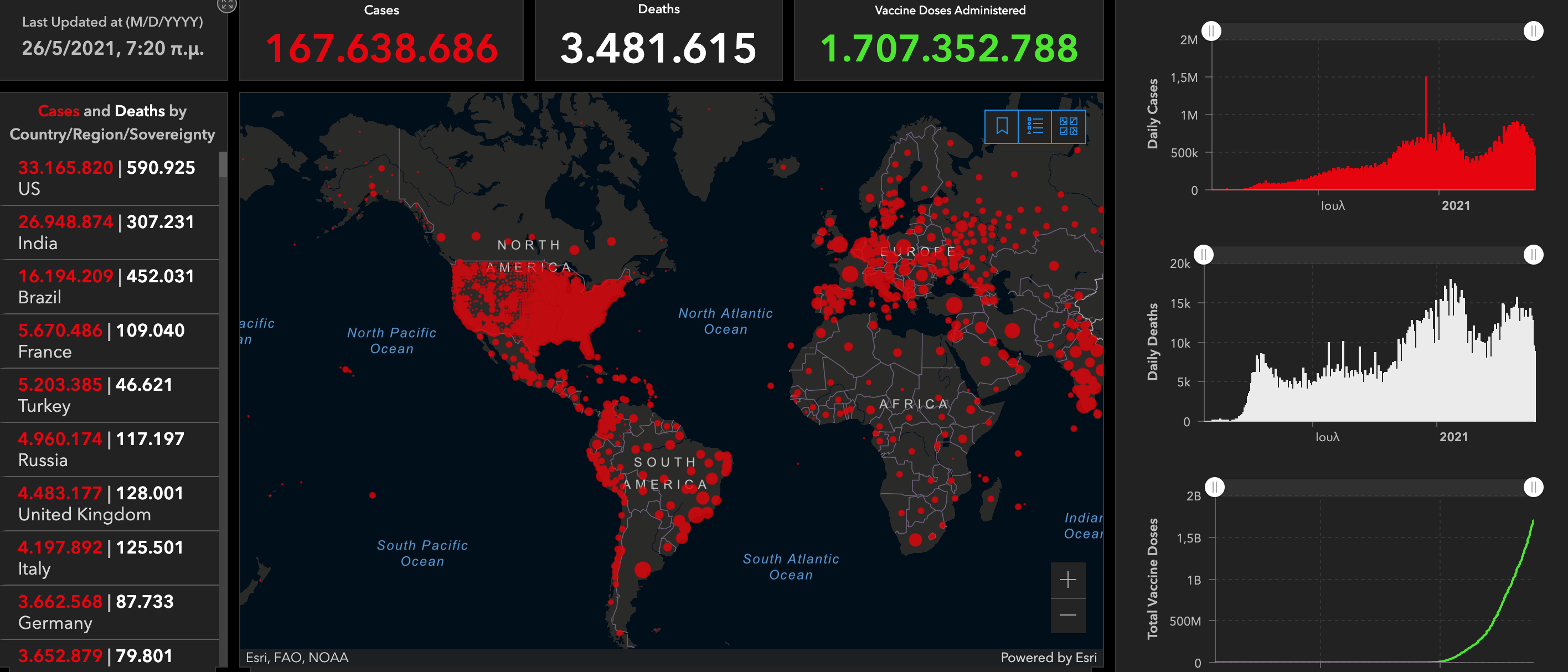 H εικόνα της πανδημίας σήμερα στον κόσμο