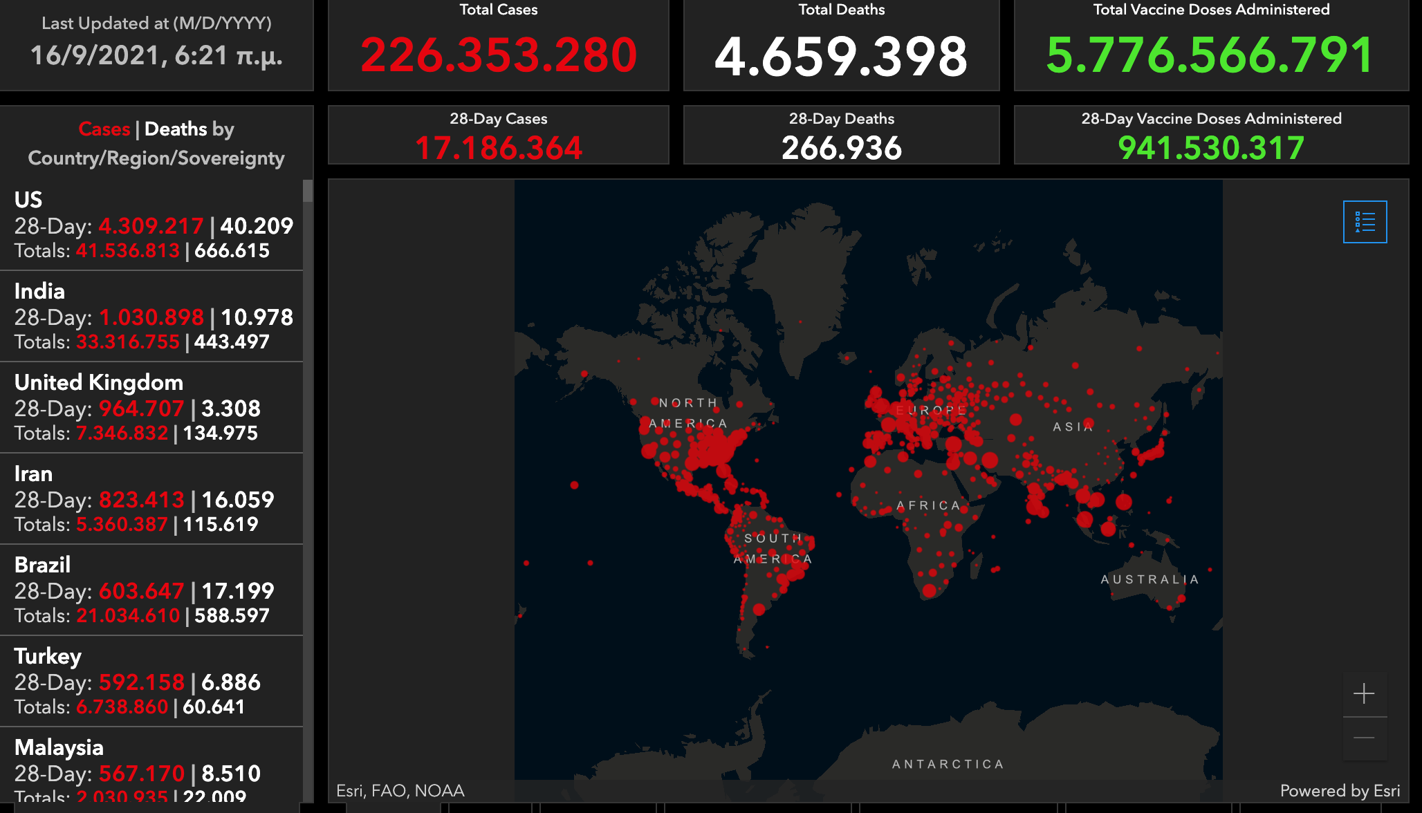 Η εικόνα της πανδημίας σήμερα στον κόσμο
