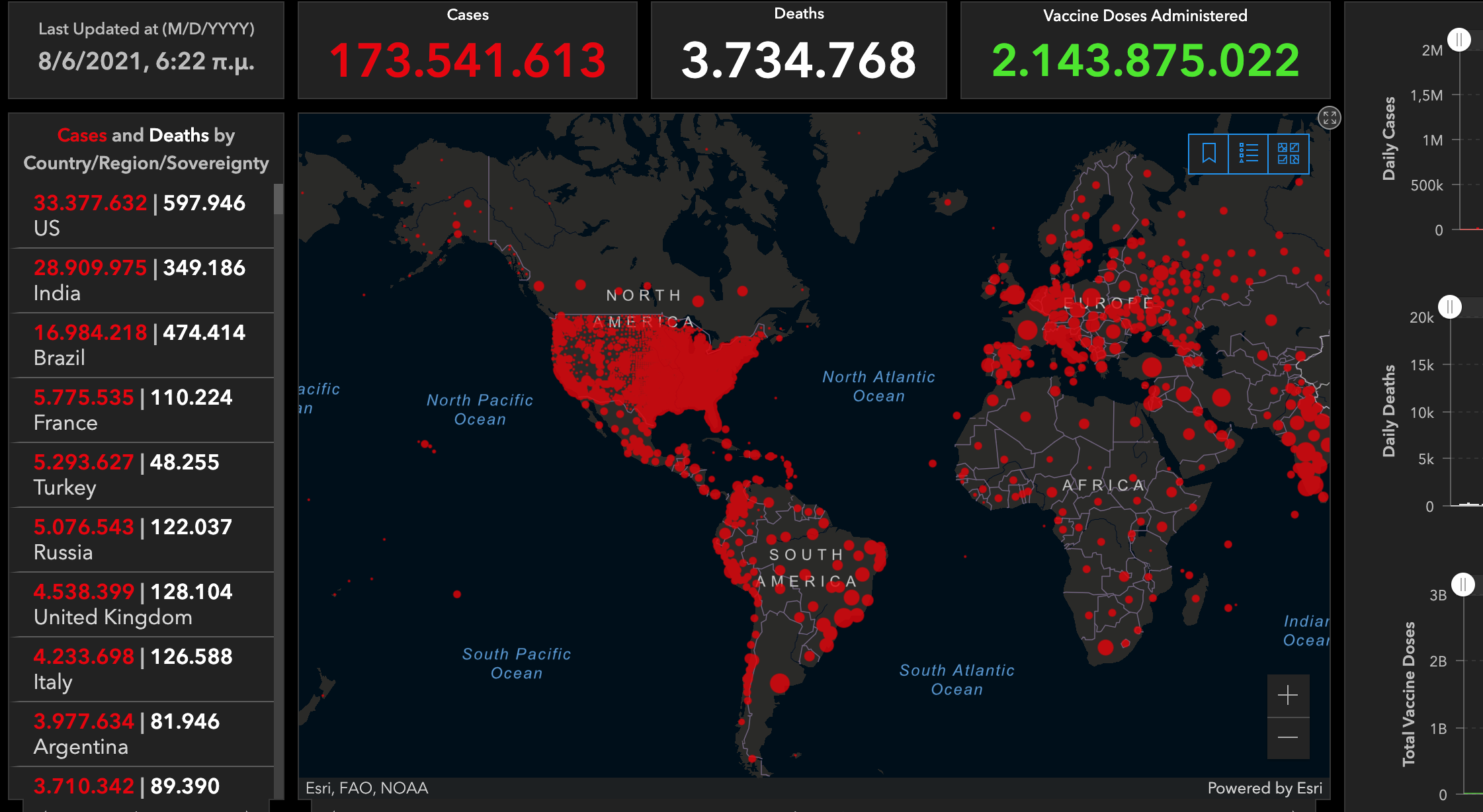 Η εικόνα της πανδημίας σήμερα στον κόσμο