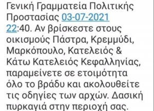 Δύσκολη ήταν η νύχτα για τους κατοίκους του νησιού, καθώς με απόφαση του Δημάρχου Αργοστολίου εκκενώθηκαν οι περιοχές: Καπανδρίτι, Καμπιτσάτα, Μαρκόπουλο, Κρεμμύδι και Αγία Ειρήνη και αυτή τη στιγμή η κατεύθυνση του ανέμου οδηγεί την πυρκαγιά, προς το χωριό Πάστρα.