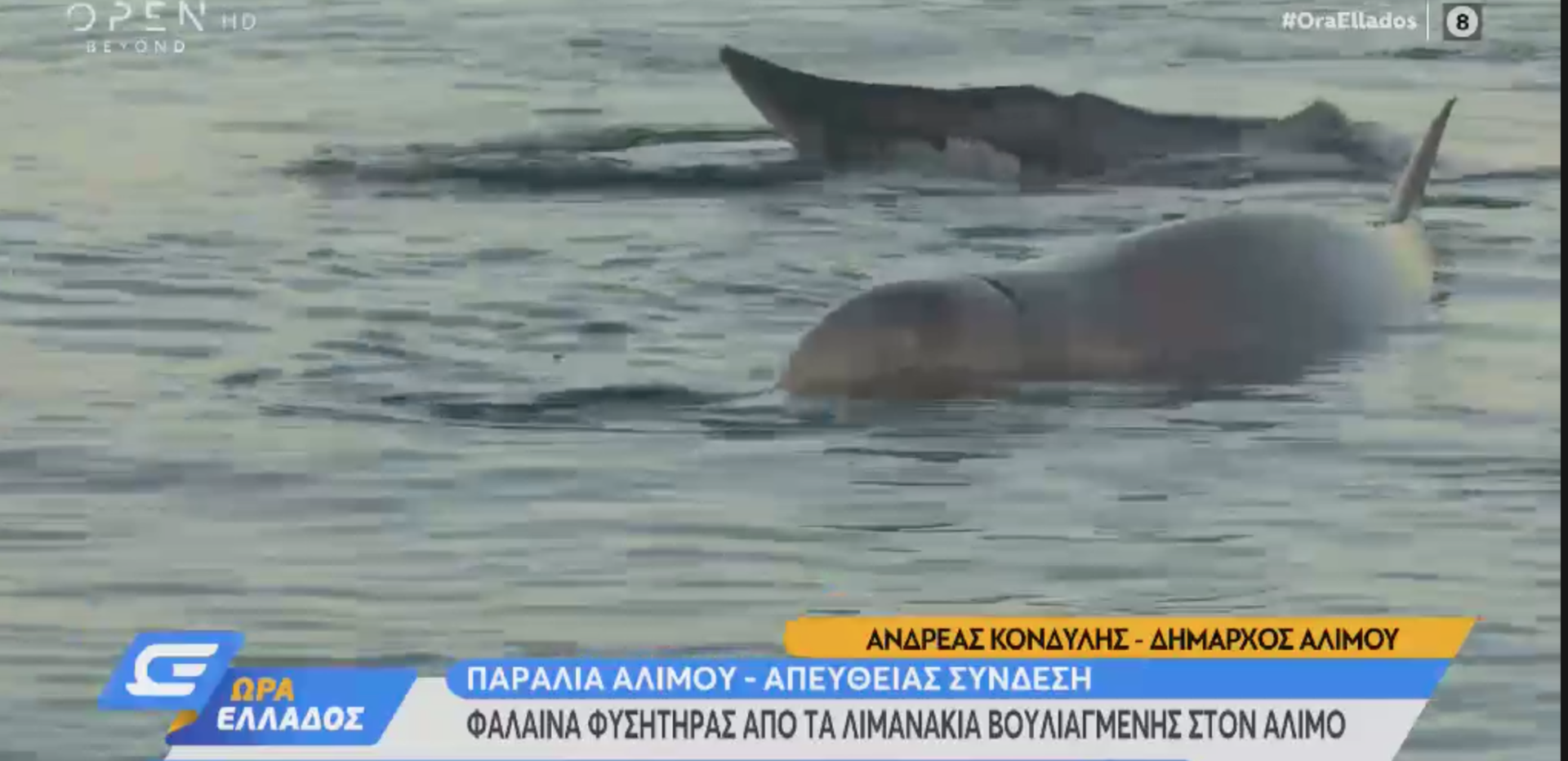 Πρωτόγνωρες εικόνες με εγκλωβισμένη φάλαινα στον Άλιμο