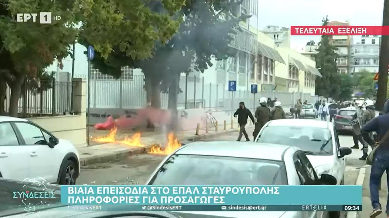 Σταυρούπολη: Εκτός ελέγχου η κατάσταση-Πέτρες και μολότοφ μέσα απ’ το ΕΠΑΛ