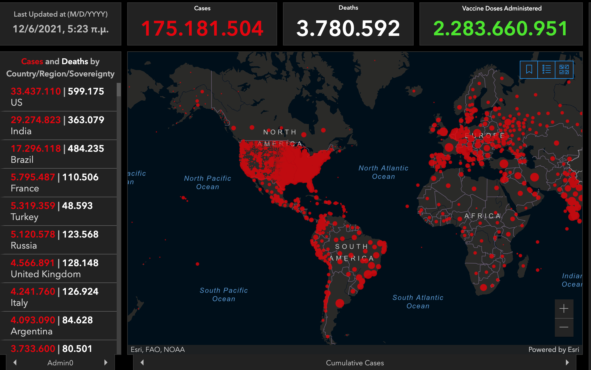 H εικόνα της πανδημίας σήμερα στον κόσμο