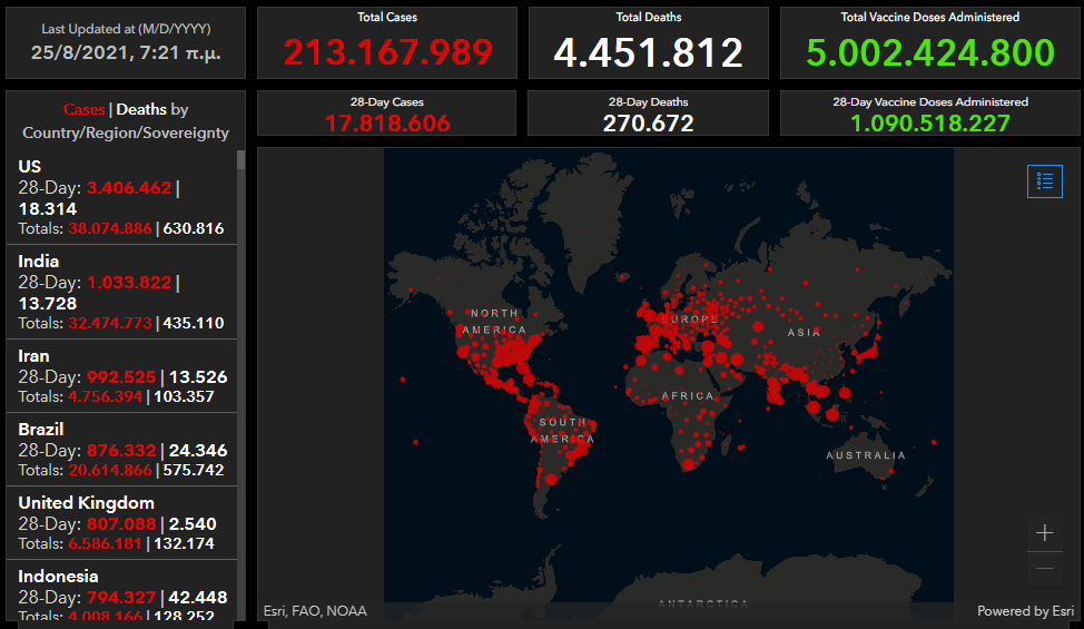 Η εικόνα της πανδημίας σήμερα στον κόσμο