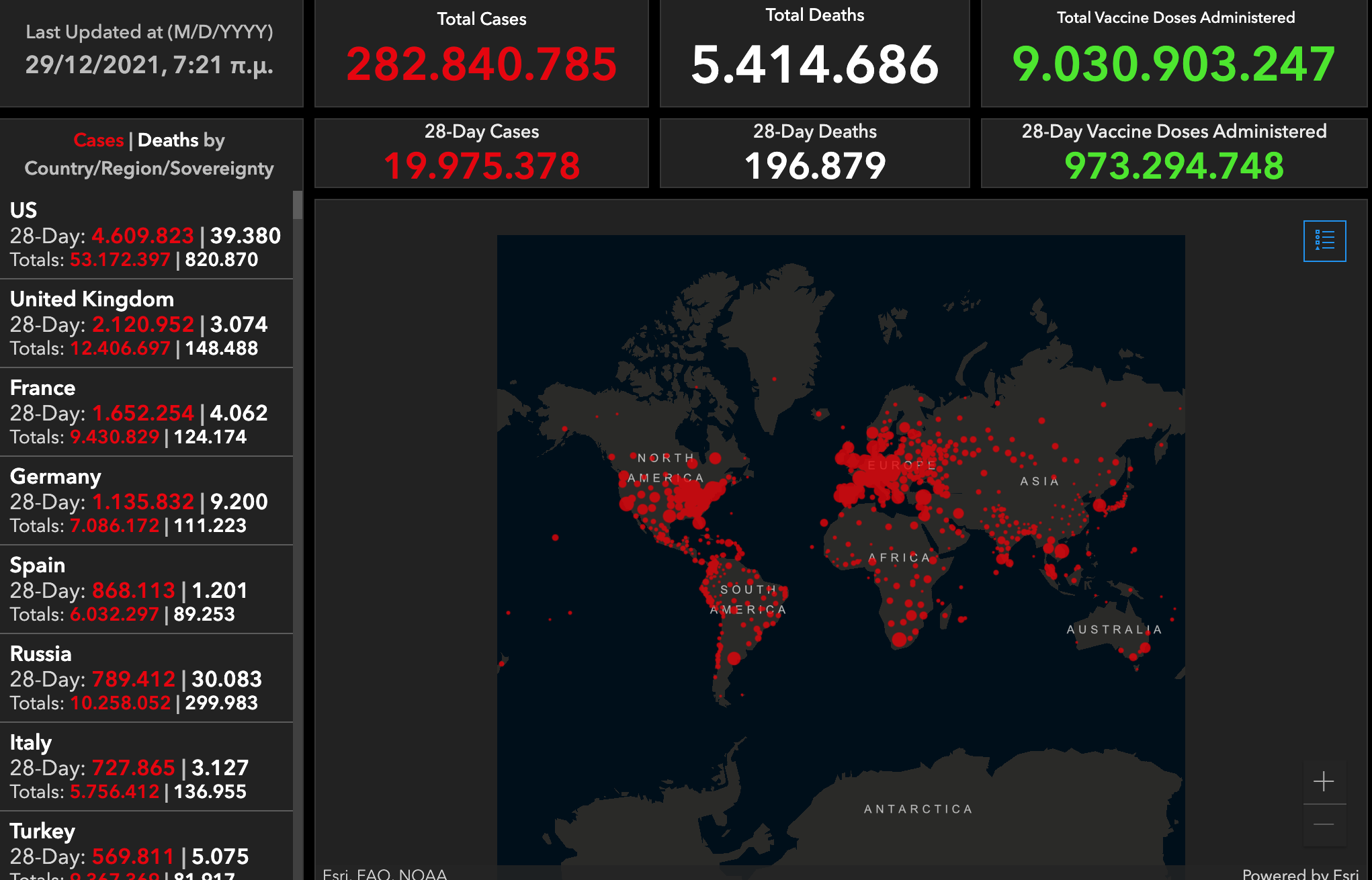 Η εικόνα της πανδημίας σήμερα στον κόσμο
