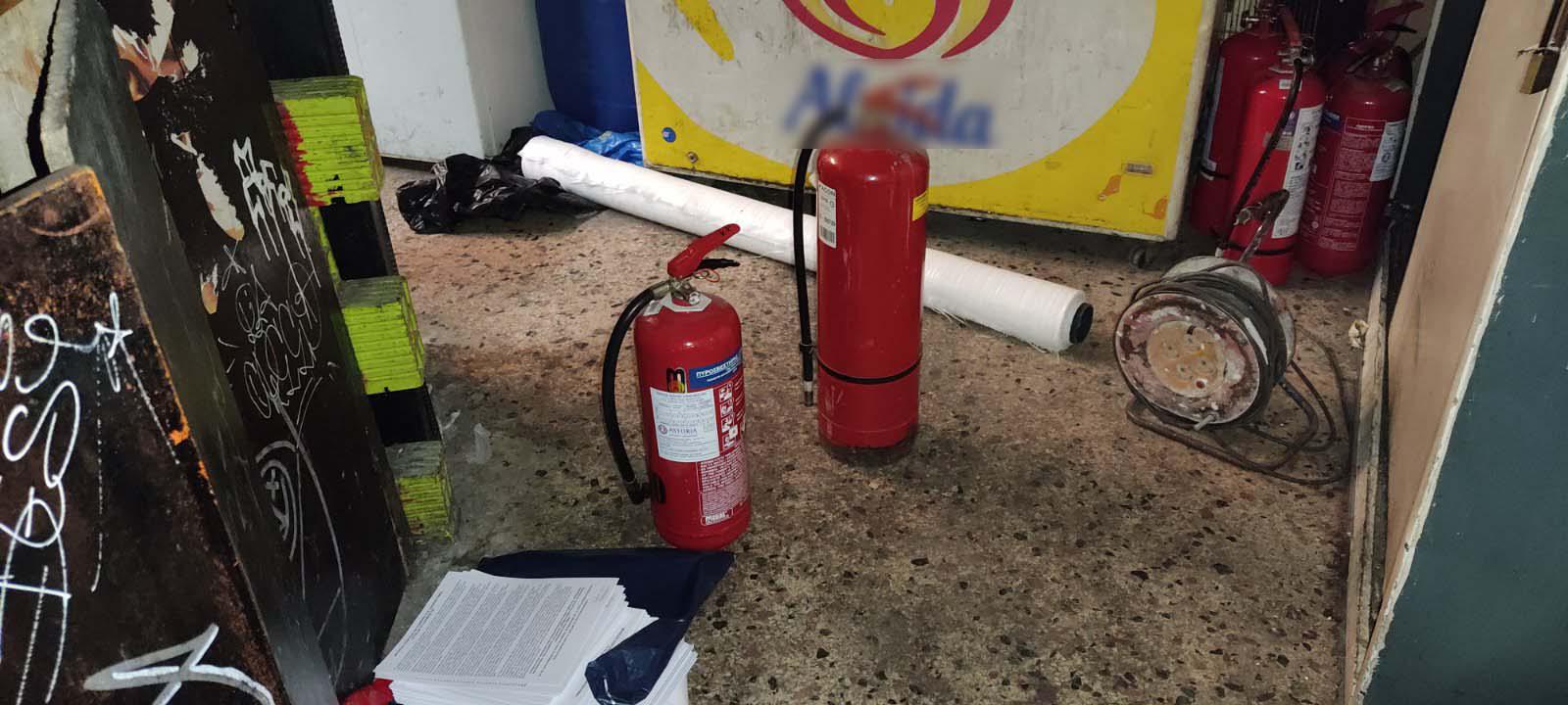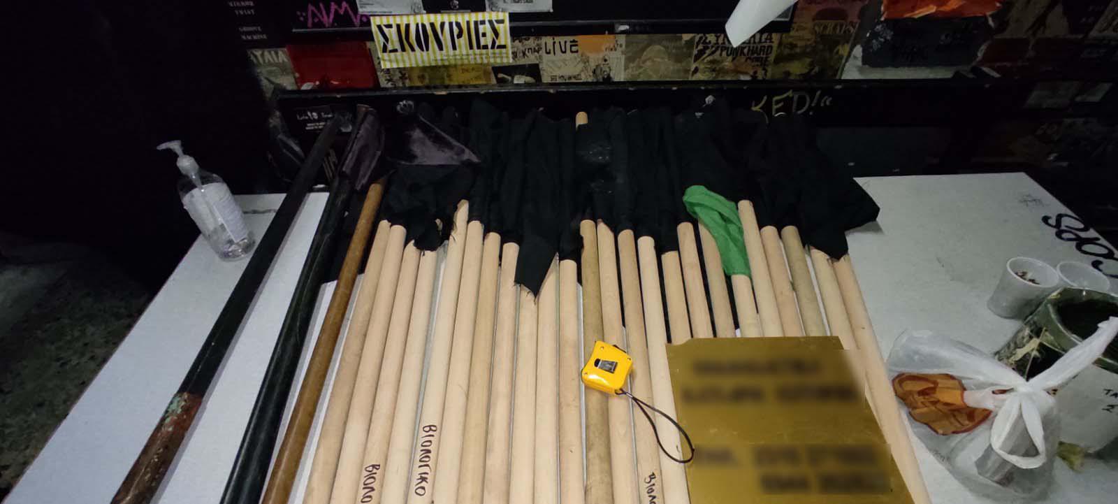 Στο πλαίσιο της επιχείρησης, που ξεκίνησε πρωινές ώρες σήμερα (31-12-2021), βρέθηκαν στον ανωτέρω χώρο και κατασχέθηκαν: (26) ξύλινα κοντάρια, (4) πανό, (1) αυτοσχέδια βαριοπούλα, (1) μεταλλική ράβδος, (1) σακούλα, που περιείχε τέσσερα (4) πετρώματα και Χρηματικό ποσό