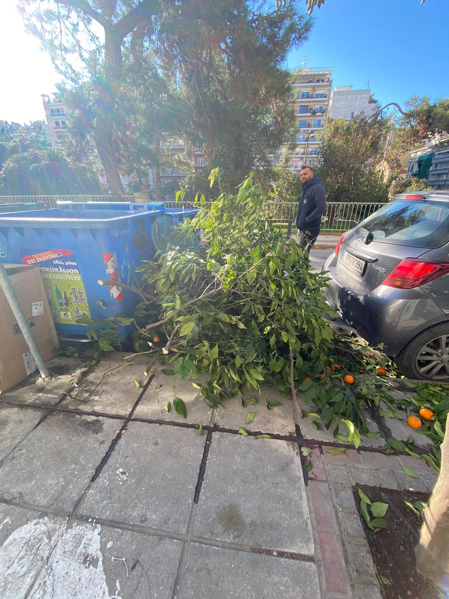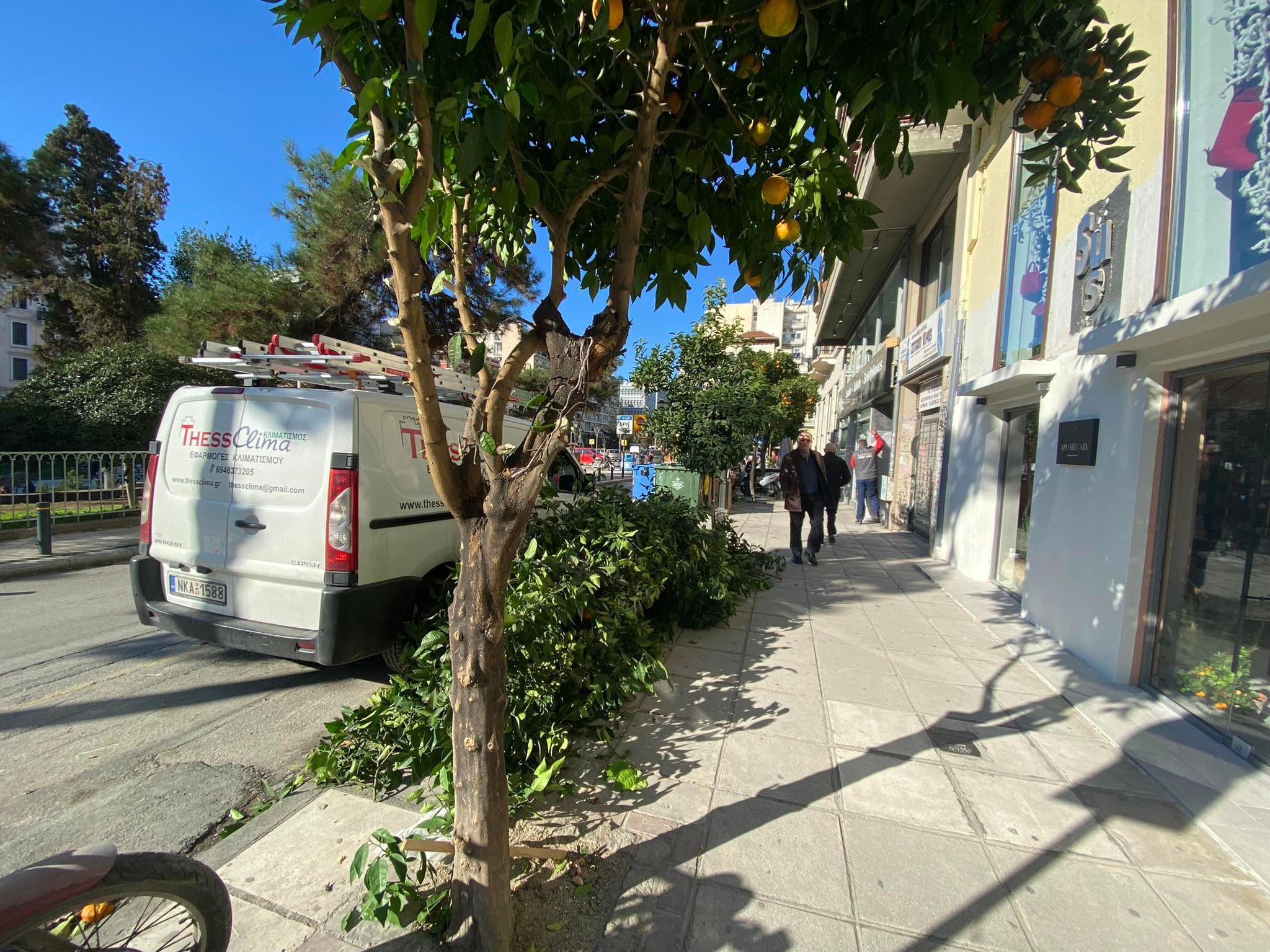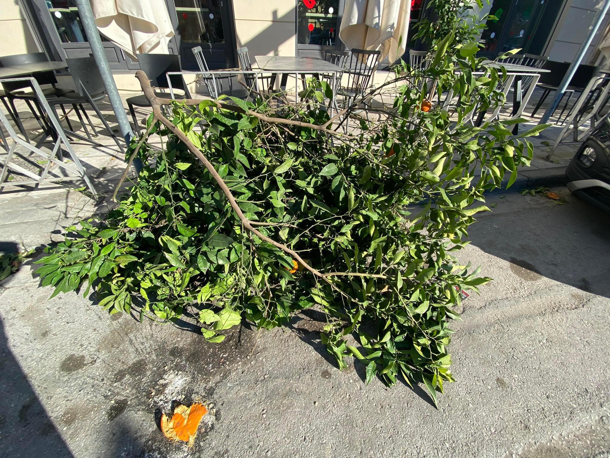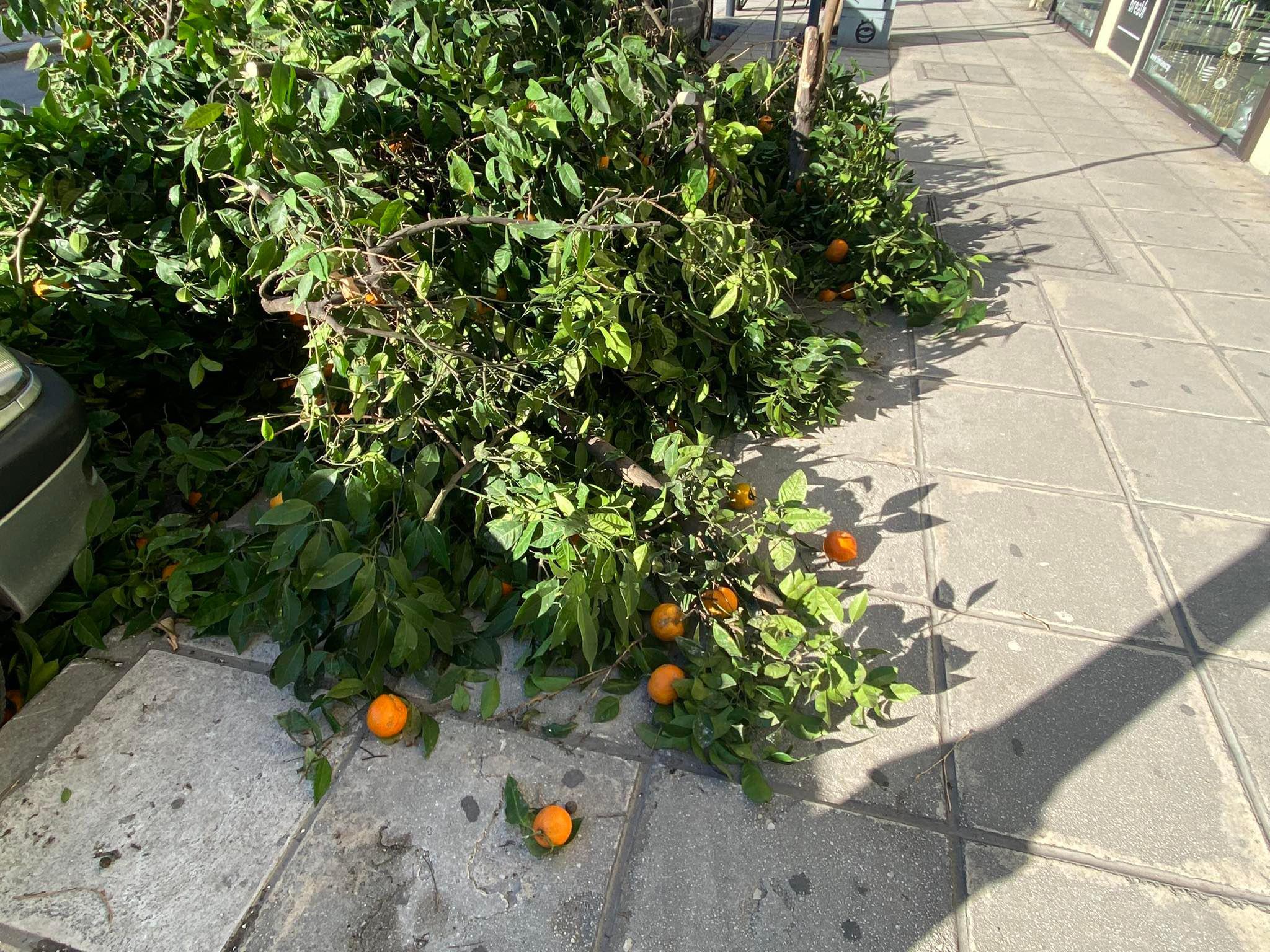 Εντύπωση προκάλεσαν σε αρκετούς κατοίκους της περιοχής, αλλά και σε περαστικούς, οι εικόνες με τα πεσμένα κλαδιά των νεραντζιών που υπάρχουν επί της Αγίας Σοφίας.