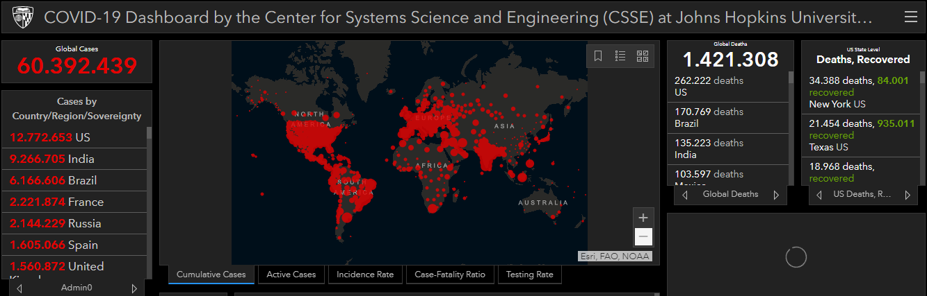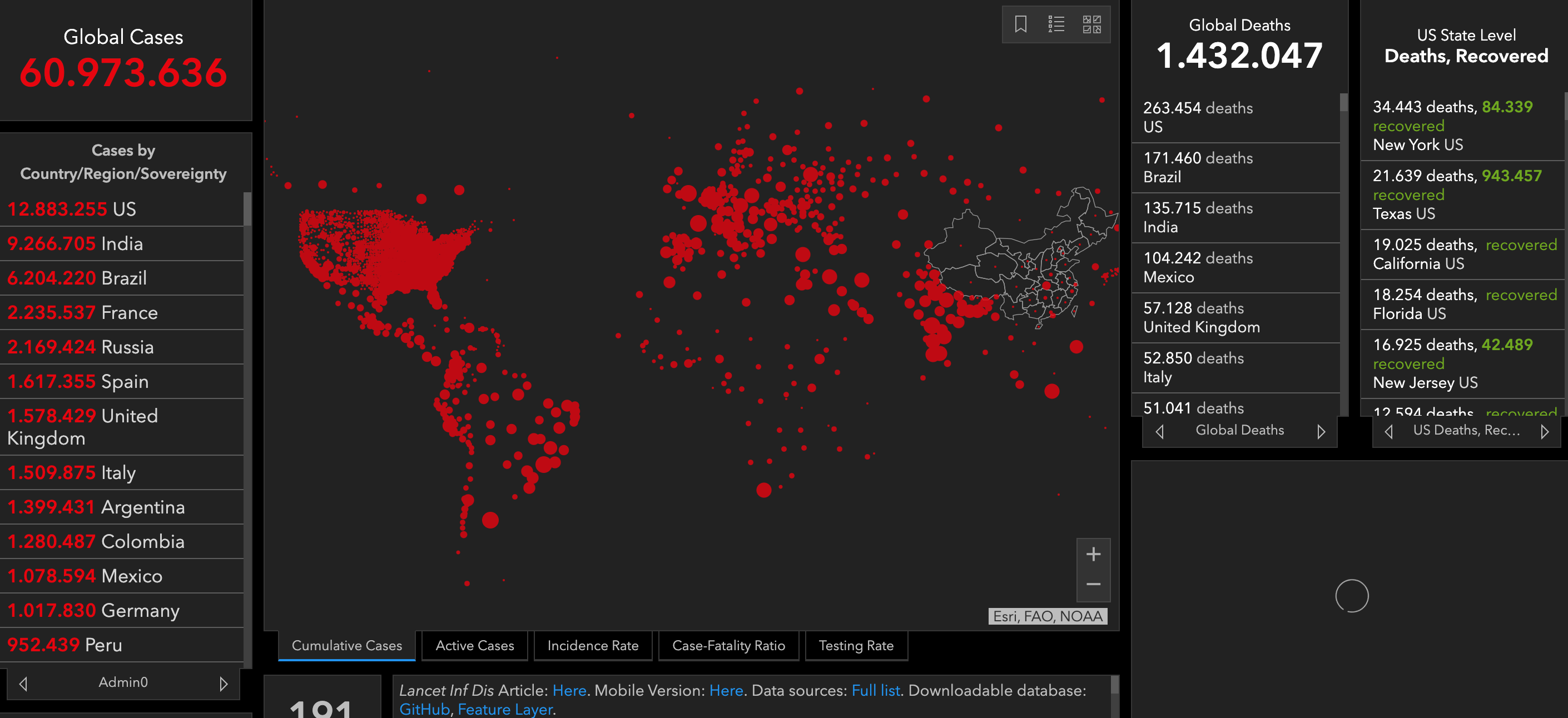 Σύμφωνα με τα δεδομένα που συγκεντρώνει το Ινστιτούτο Ρόμπερτ Κοχ για τις λοιμώδεις νόσους, τις προηγούμενες 24 ώρες επιβεβαιώθηκαν 22.806 μολύνσεις από τον νέο κορωνοϊό, με το σύνολό τους να φθάνει πλέον τις 1.006.394.
