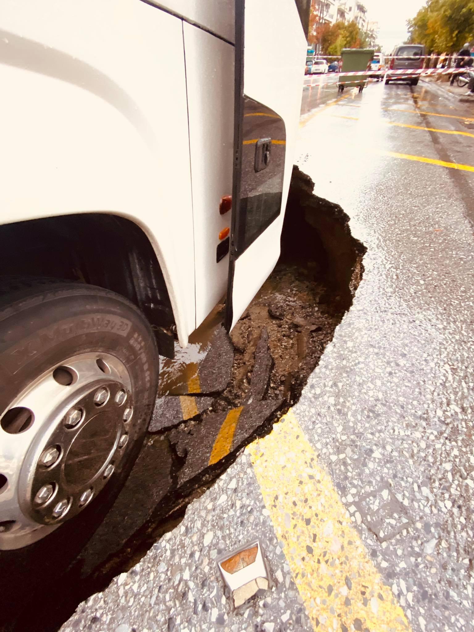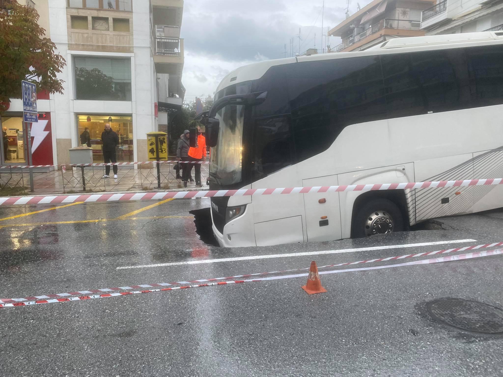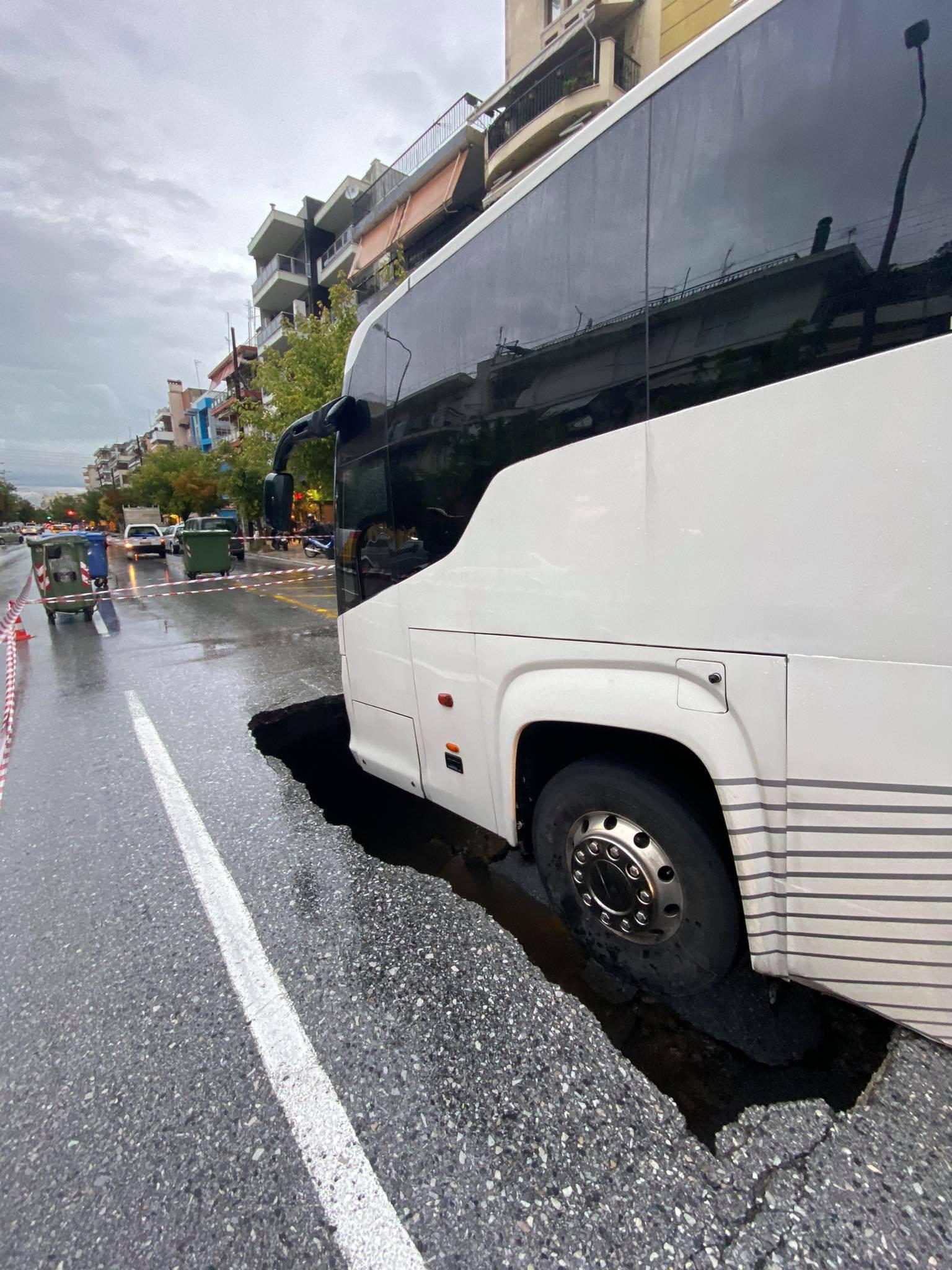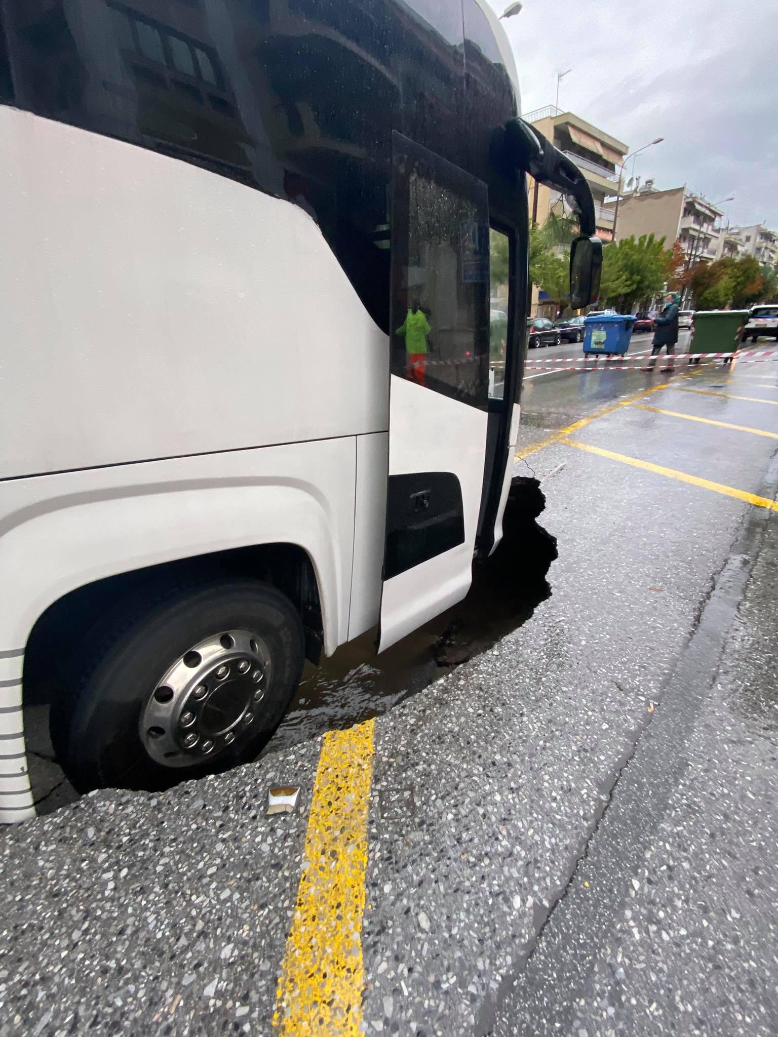 Με αρκετή περιπέτεια ξεκίνησε η ημέρα για 15 τουλάχιστον άτομα στη Θεσσαλονίκη, καθώς λεωφορείο στο οποίο επέβαιναν έπεσε σε γούβα 5 μέτρων η οποία δημιουργήθηκε στο δρόμο από την βροχόπτωση που πλήττει την πόλη τις τελευταίες δύο ημέρες.