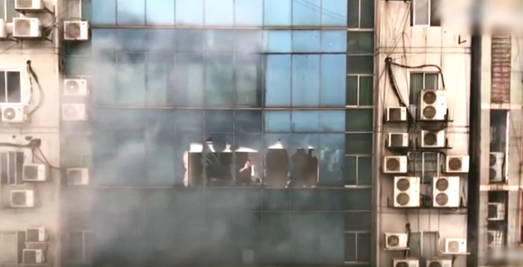 Χθες το απόγευμα τυλίχθηκε στις φλόγες το 22ώροφο κτίριο γραφείων FR Tower, όπου εργάζονται εκατοντάδες άνθρωποι και το οποίο βρίσκεται στην εμπορική περιοχή Μπανάνι της Ντάκα.