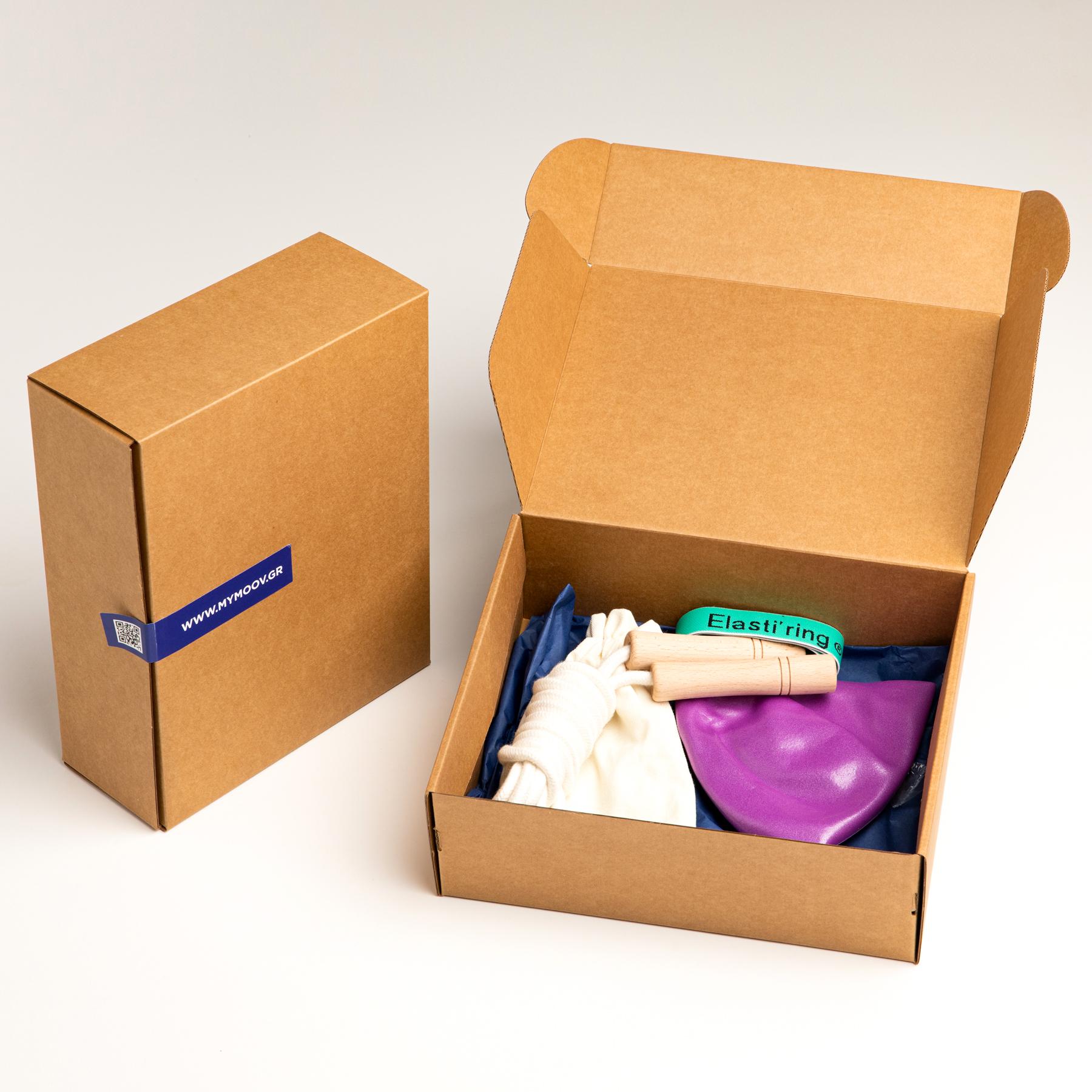 Το GYM in a BOX, είναι ολόκληρος ο εξοπλισμός γυμναστικής που χρειάζεται κάποιος σε ένα κουτί, το οποίο χωρίζεται σε τέσσερις κατηγορίες: το STARTERKIT, το ATHLETEKIT, το CHAMPIONKIT και το YOGAKIT. Σε κάθε κουτί πέρα από τον εξοπλισμό, περιλαμβάνεται και ένα εκπτωτικό κουπόνι για την online πλατφόρμα MY MOOV.