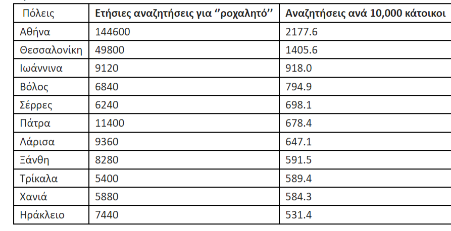 Βάσει των δεδομένων οι Αθηναίοι πλήττονται από το ροχαλητό περισσότερο με 144,600 σχετικές αναζητήσεις στο Google ετησίως. Ακολουθεί στη δεύτερη θέση η Θεσσαλονίκη.