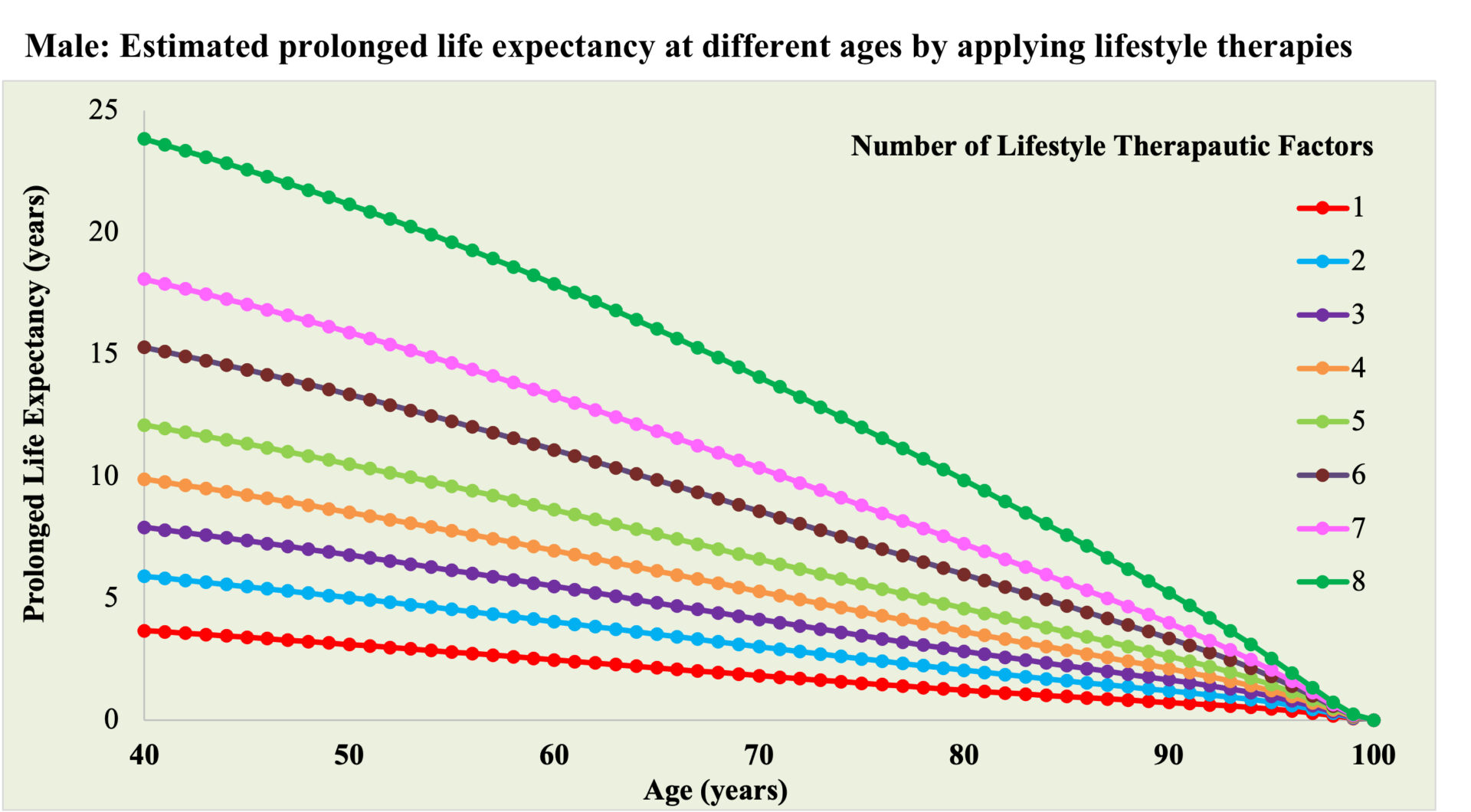 Η υιοθέτηση περισσότερων παραγόντων υγιεινού τρόπου ζωής σε νεαρότερη ηλικία (περίπου στα 40 χρόνια) συνδέεται με τα μεγαλύτερη κέρδη στο προσδόκιμο ζωής, ωστόσο διαπιστώθηκε ότι η υιοθέτηση ακόμη και λίγων από αυτούς τους παράγοντες ή η υιοθέτηση σε μεγαλύτερη ηλικία μπορεί να έχει σημαντικά αποτελέσματα.