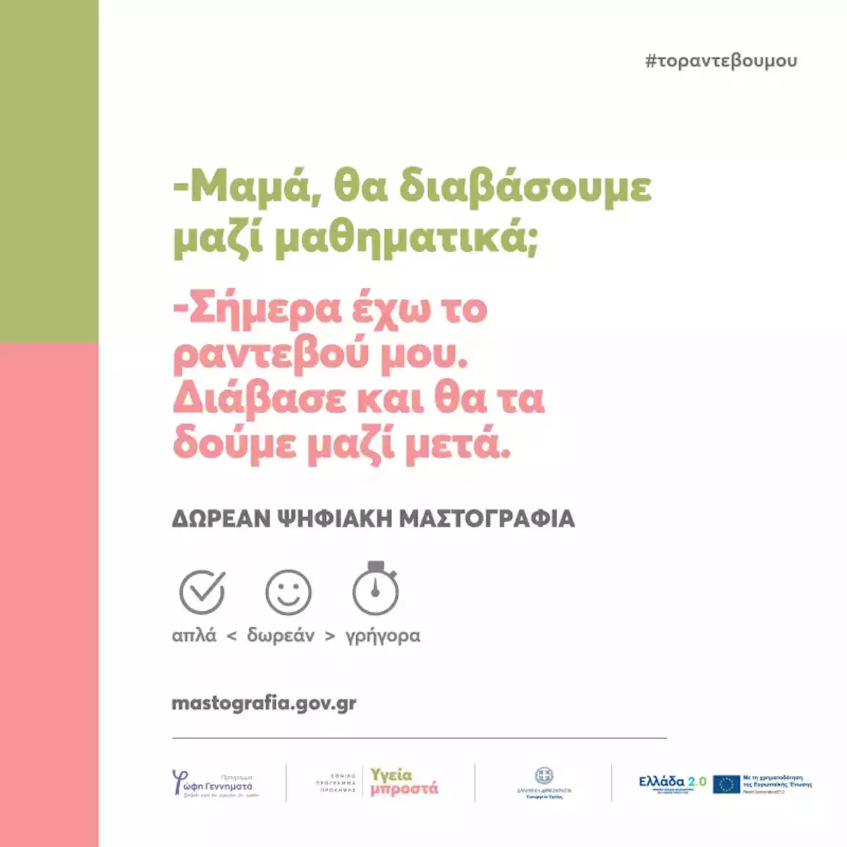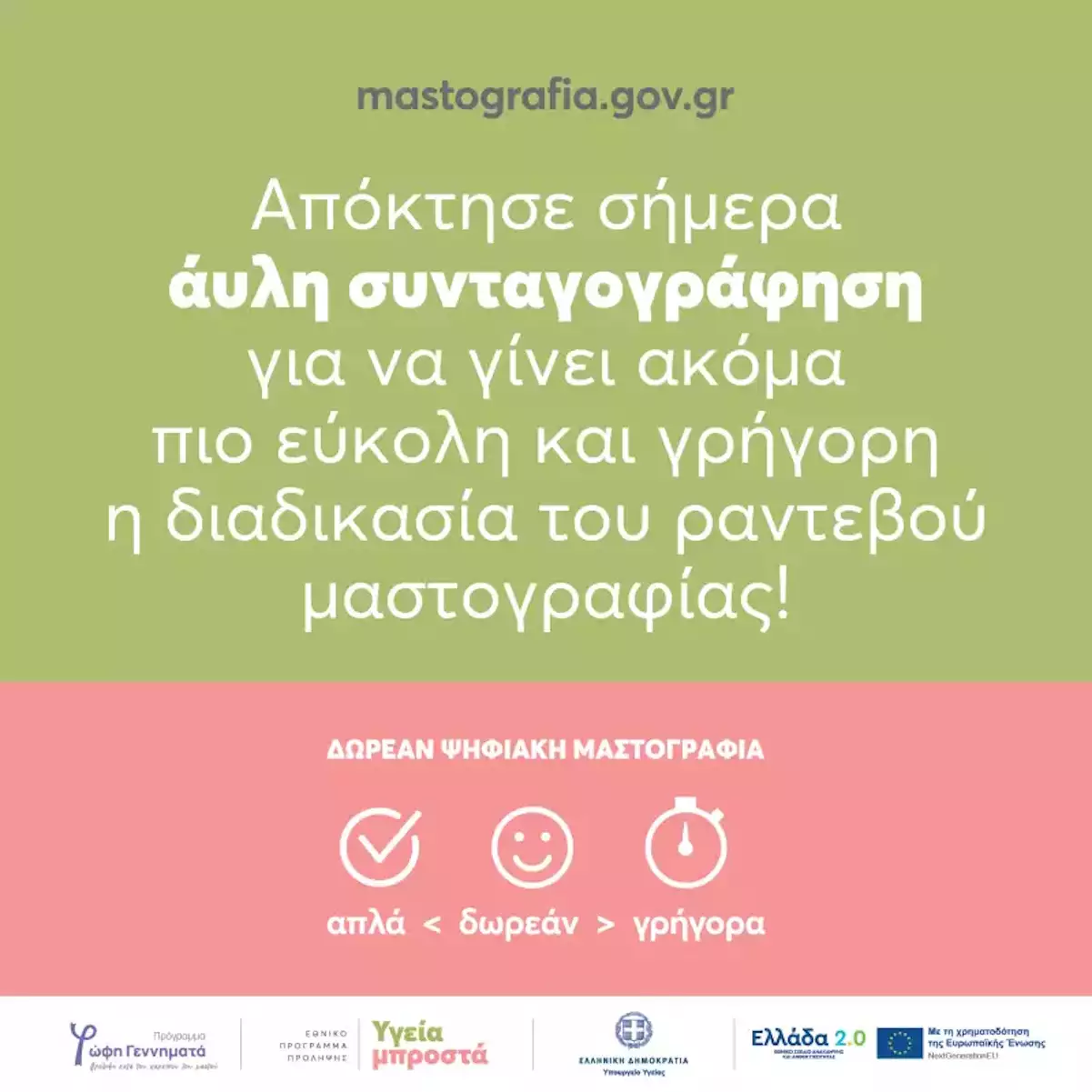 Κλείσε το ραντεβού σου για μαστογραφία απλά, δωρεάν και γρήγορα.